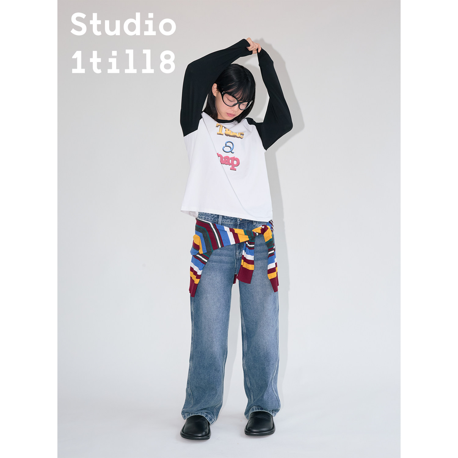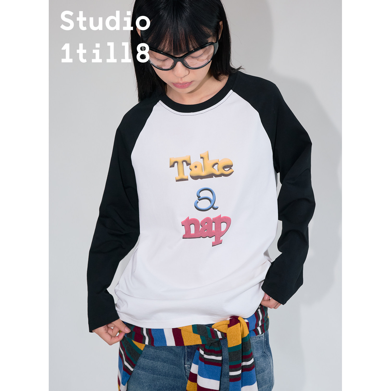 Take 长袖 印花上衣黑白撞色插肩袖 T恤女 nap Studio1till8