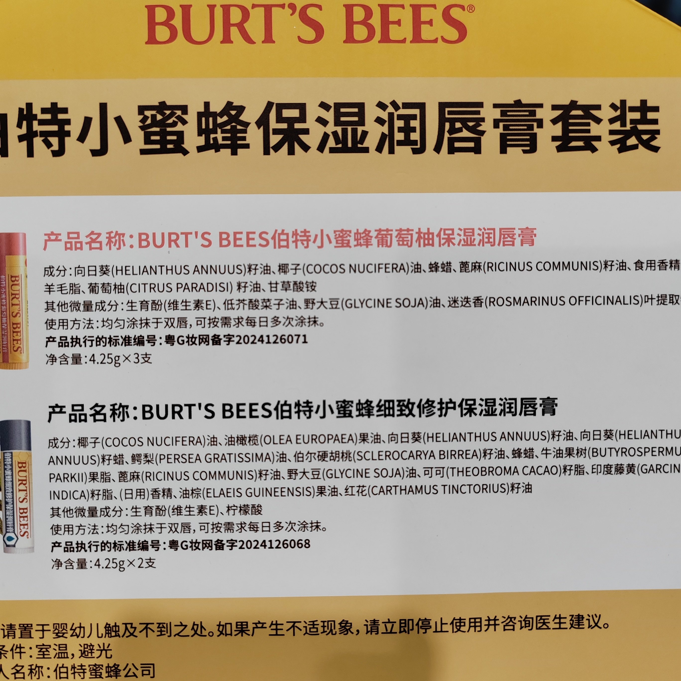 细致修护 5葡萄柚 山姆采购伯特小蜜蜂保湿 润唇膏滋润防干裂4.25g
