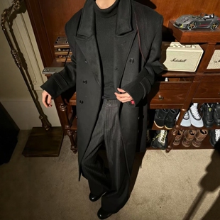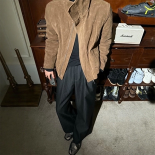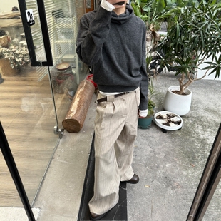 男女同款 MUKHINA 条纹A字阔腿打褶廓形垂感TR混纺休闲通勤西裤