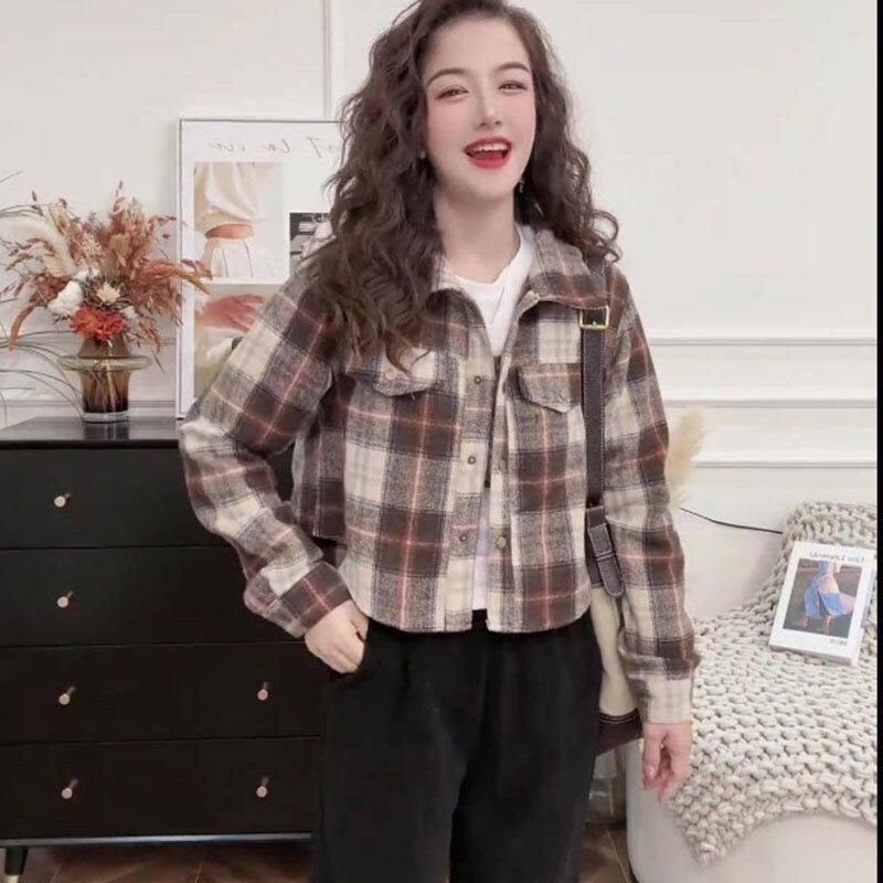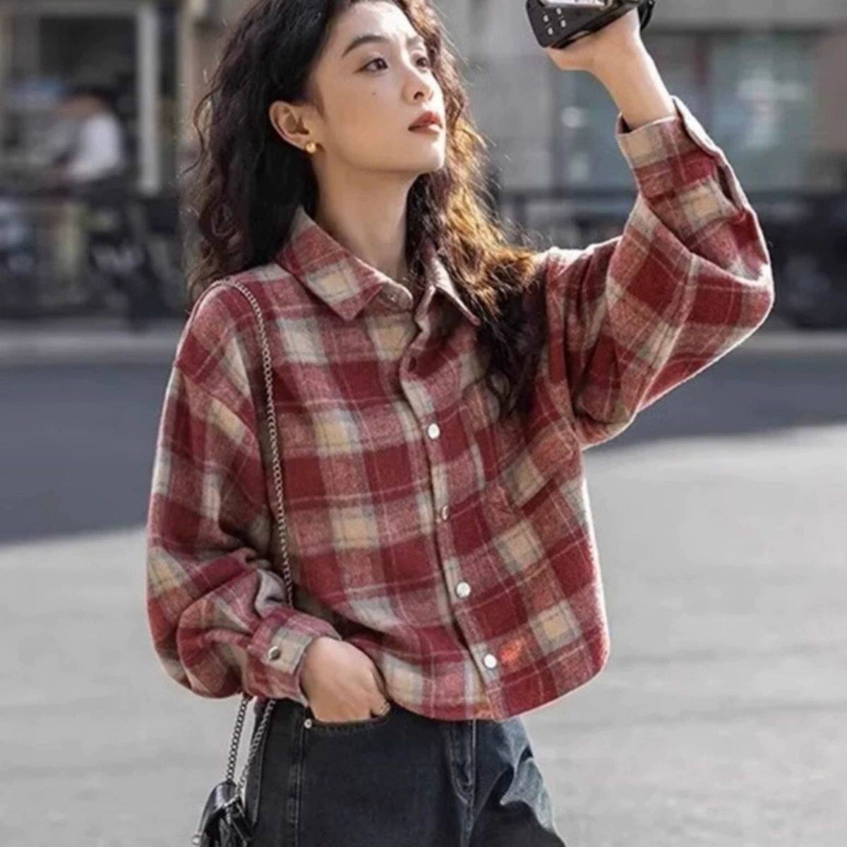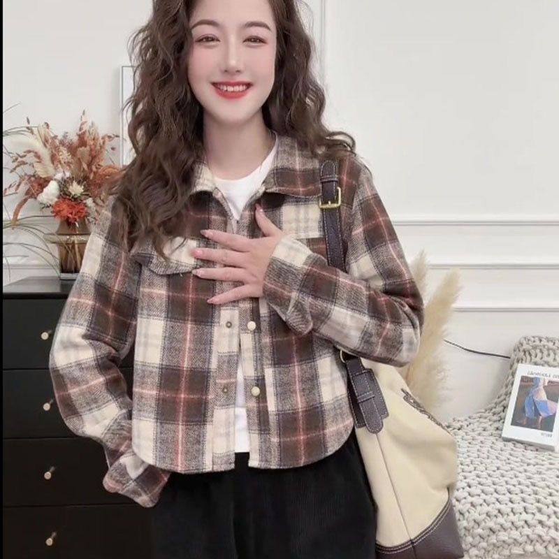 外套 上衣宽松韩系复古休闲衬衫 2026新款 春秋格子衬衣女设计感长袖