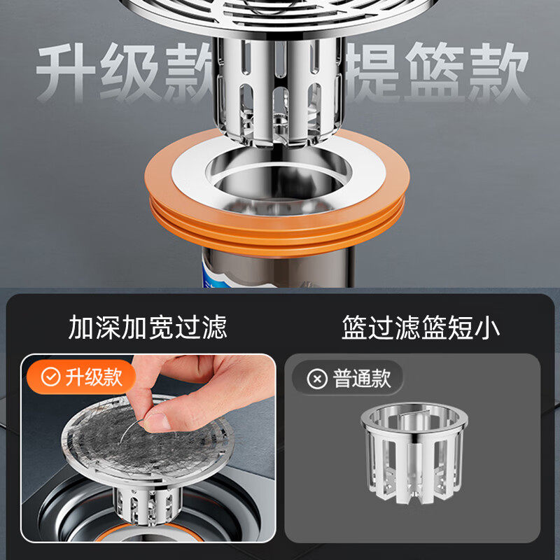 不锈钢断层地漏延长管加长地漏内芯通用卫生间下水道口防返臭神器