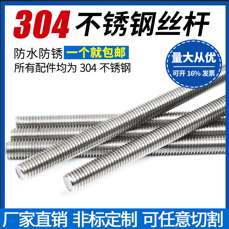 304不锈钢牙条M4M6M8M10M12丝杆通丝全螺纹螺杆M5M14M16M20M30