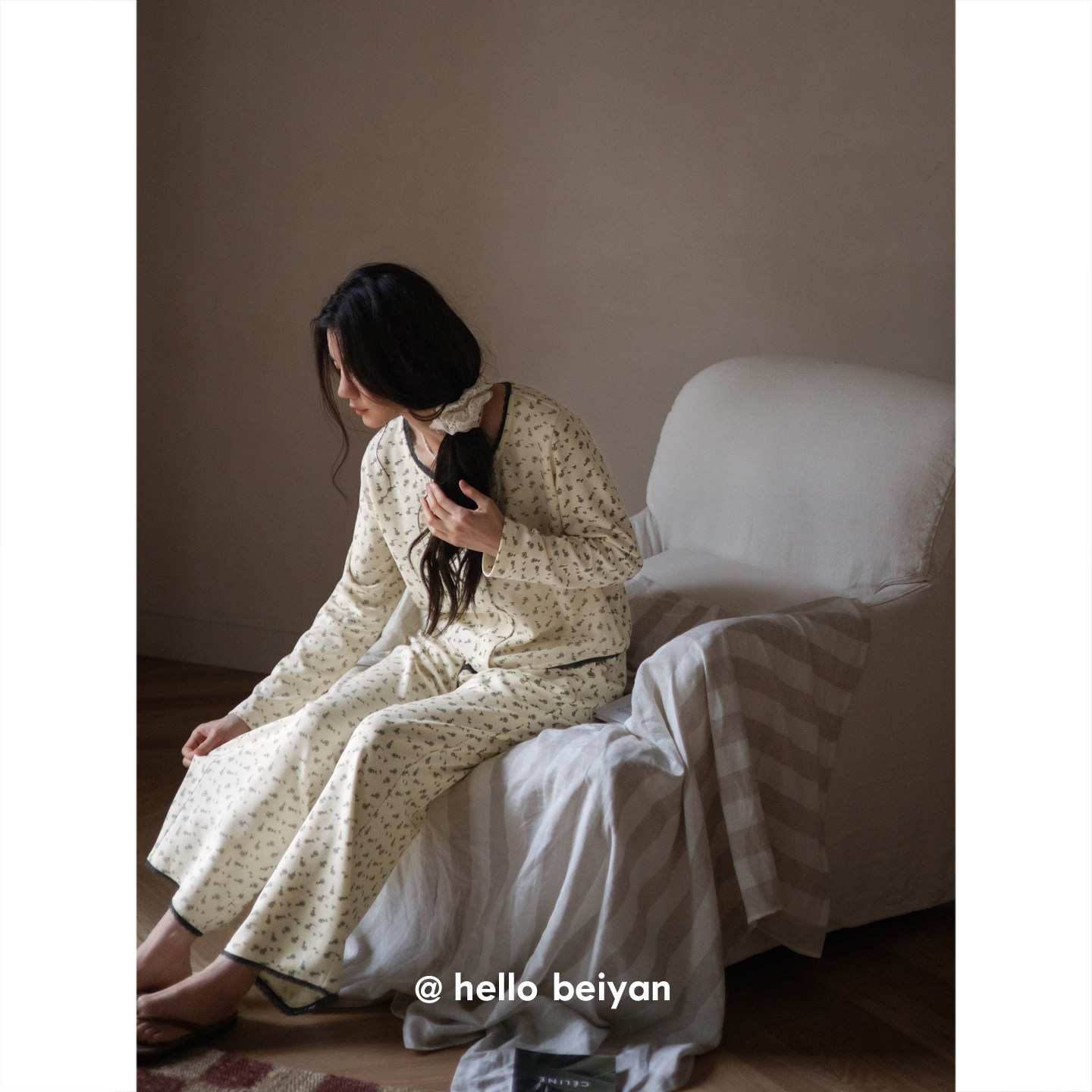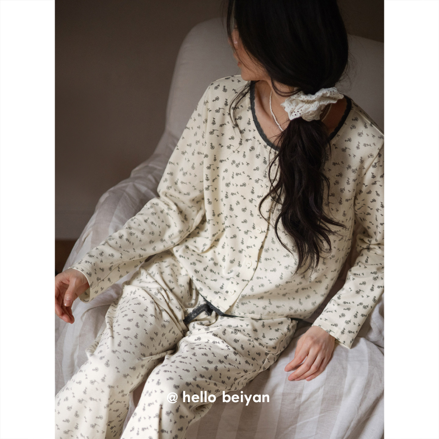 甜美碎花田园风套装 贝妍莫代尔棉睡衣女春秋款 家居服时尚 开衫 长袖