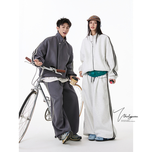 高街oversiz运动两件套 男秋季 V37美式 青少年撞色条纹情侣卫衣套装
