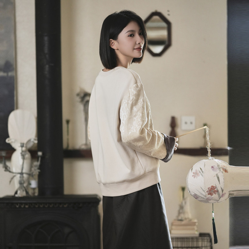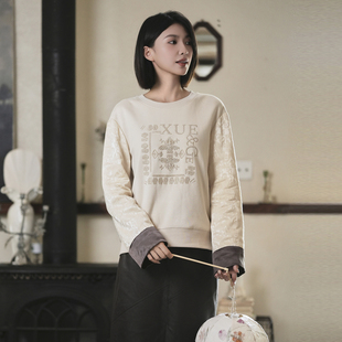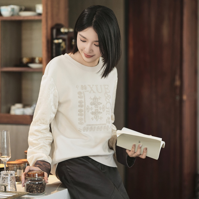 XG雪歌25冬新款 国风绣花宽松落肩休闲通勤卫衣外套女XK401015A160
