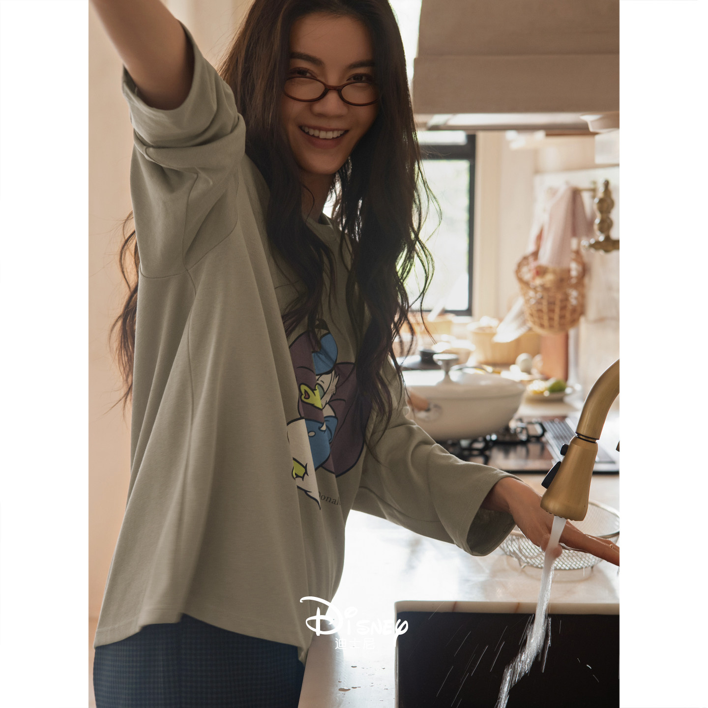 宽松休闲套装 迪士尼唐老鸭睡衣女款 柔软棉质家居服大码 长袖 春秋季