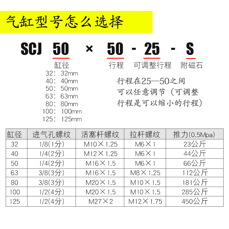 气缸可调行程SCJ32 100x75x125x150x200x250凯博气动