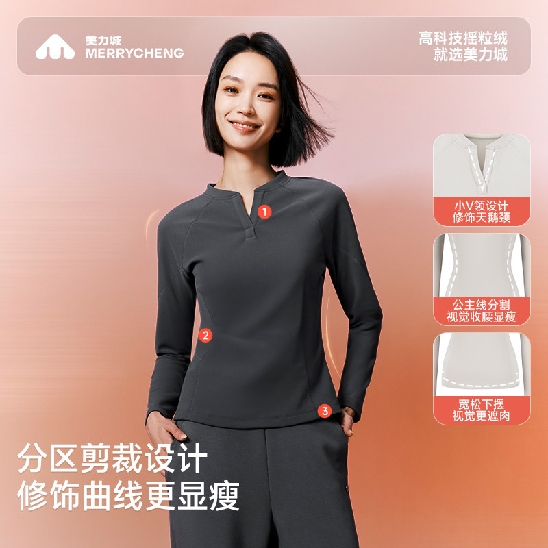 女士X007 显瘦百搭打底衫 美力城长袖 T恤绒感内搭上衣V领修身