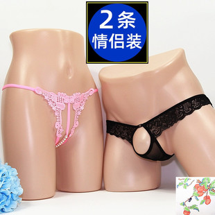 情侣款 洞开 激情丁字裤 2024潮流一男一女开 裆免 透明套装 情侣内裤