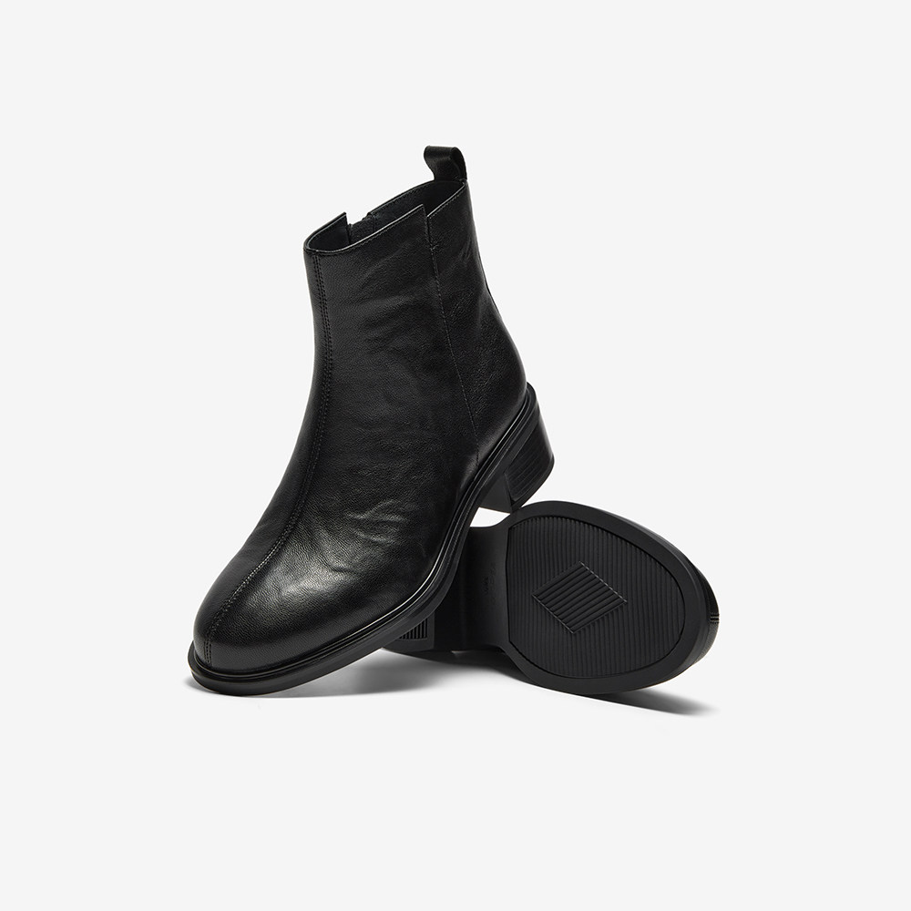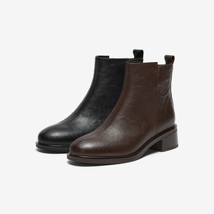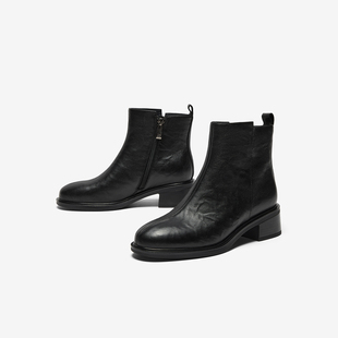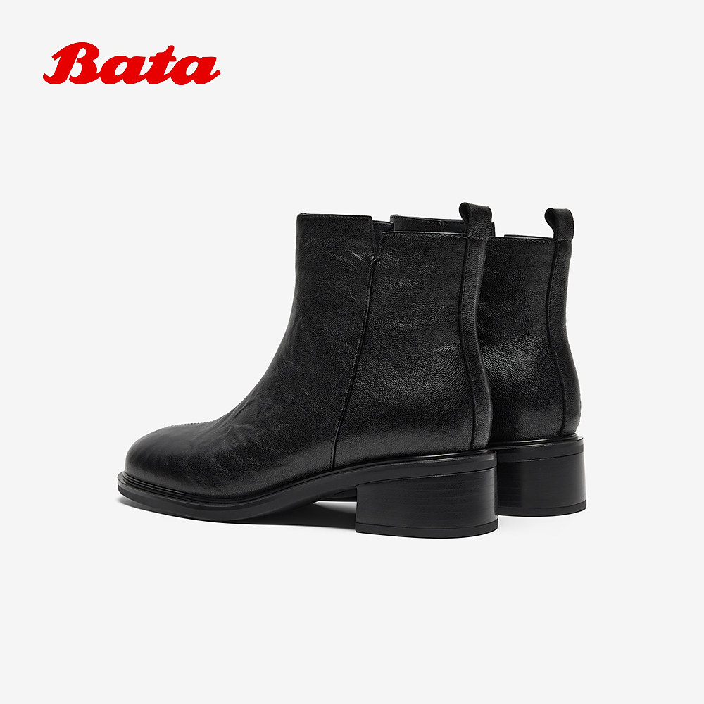 粗跟百搭羊皮加绒短筒靴76180DD5 商场新款 Bata时装 靴女2025冬季
