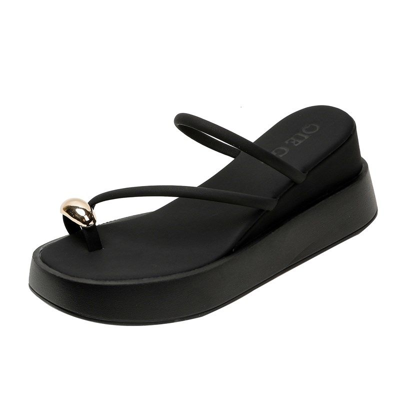 hotmarzz厚底人字拖女夏外穿防滑坡跟夹脚高跟增高海边沙滩凉拖鞋