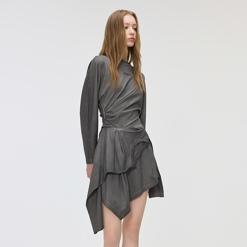 RuirUirul解构卫衣连衣裙25年秋新品 型侧腰收褶休闲裙子女 宽松版