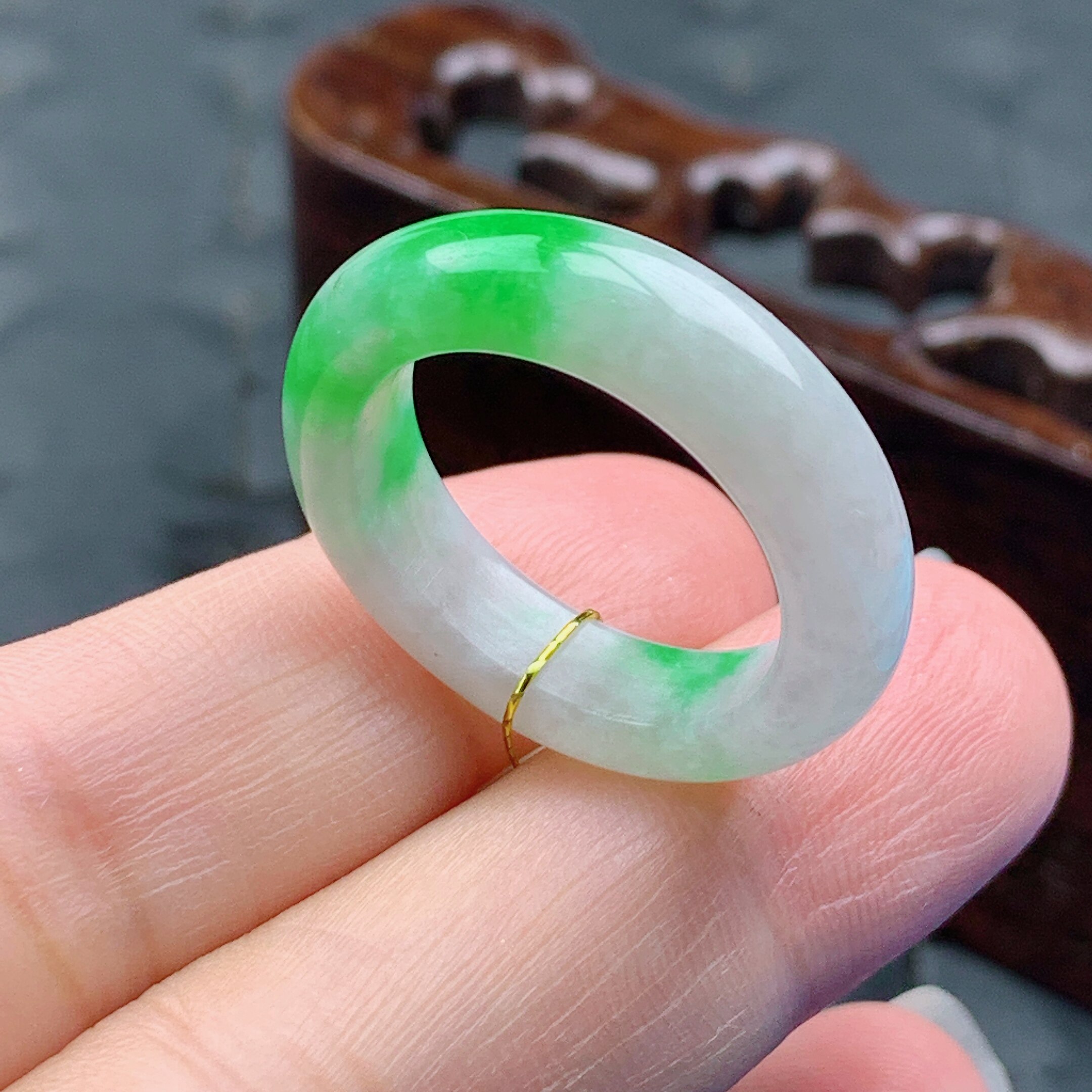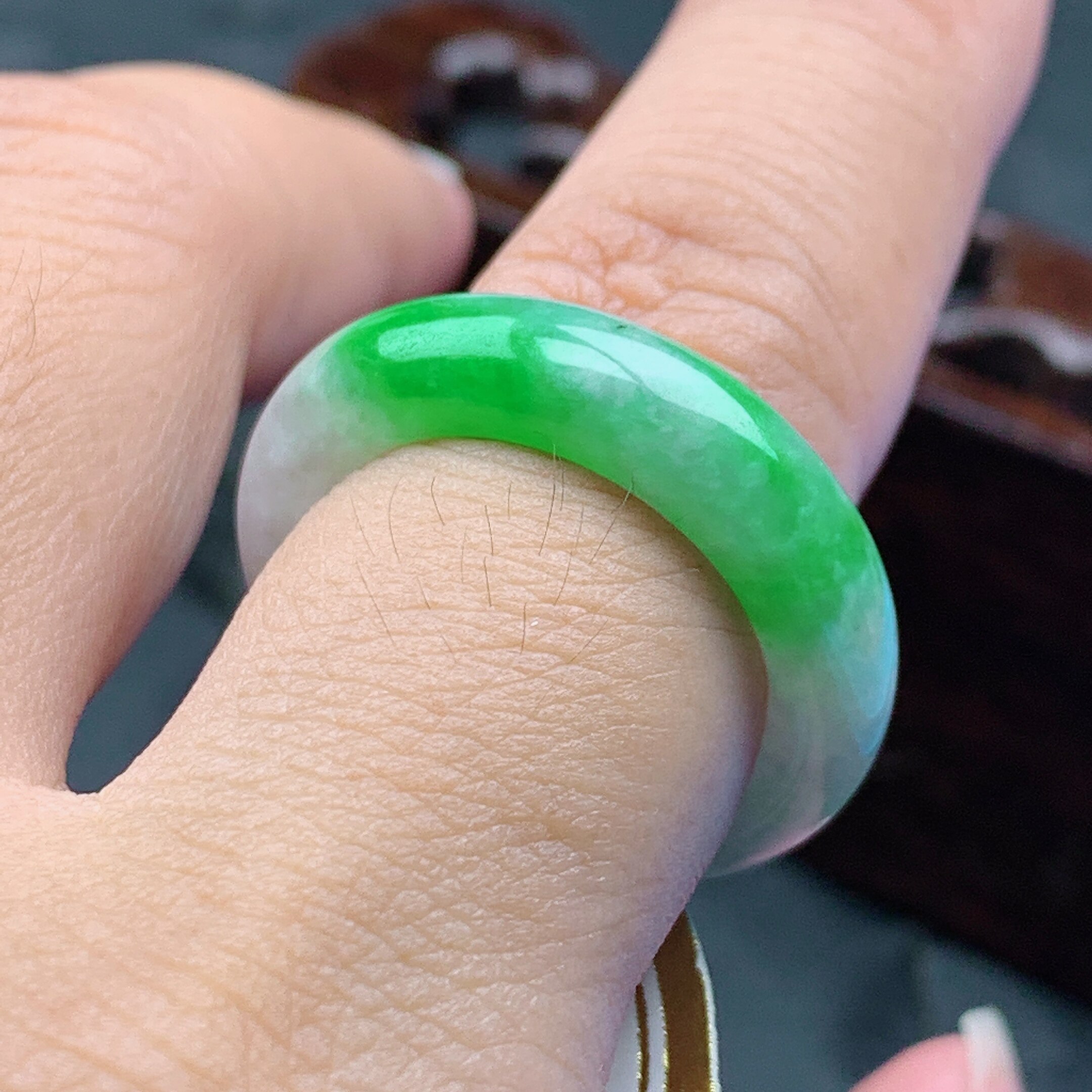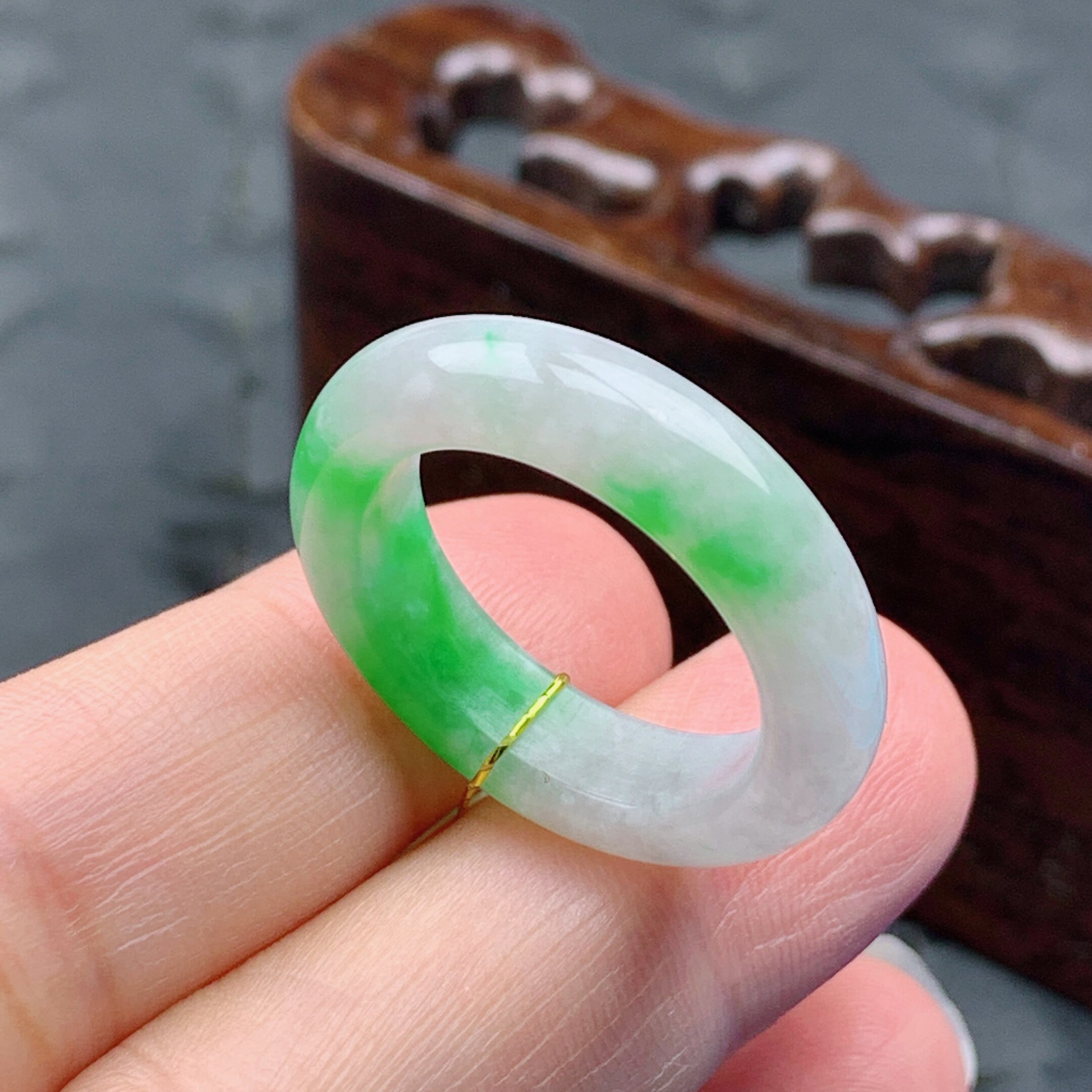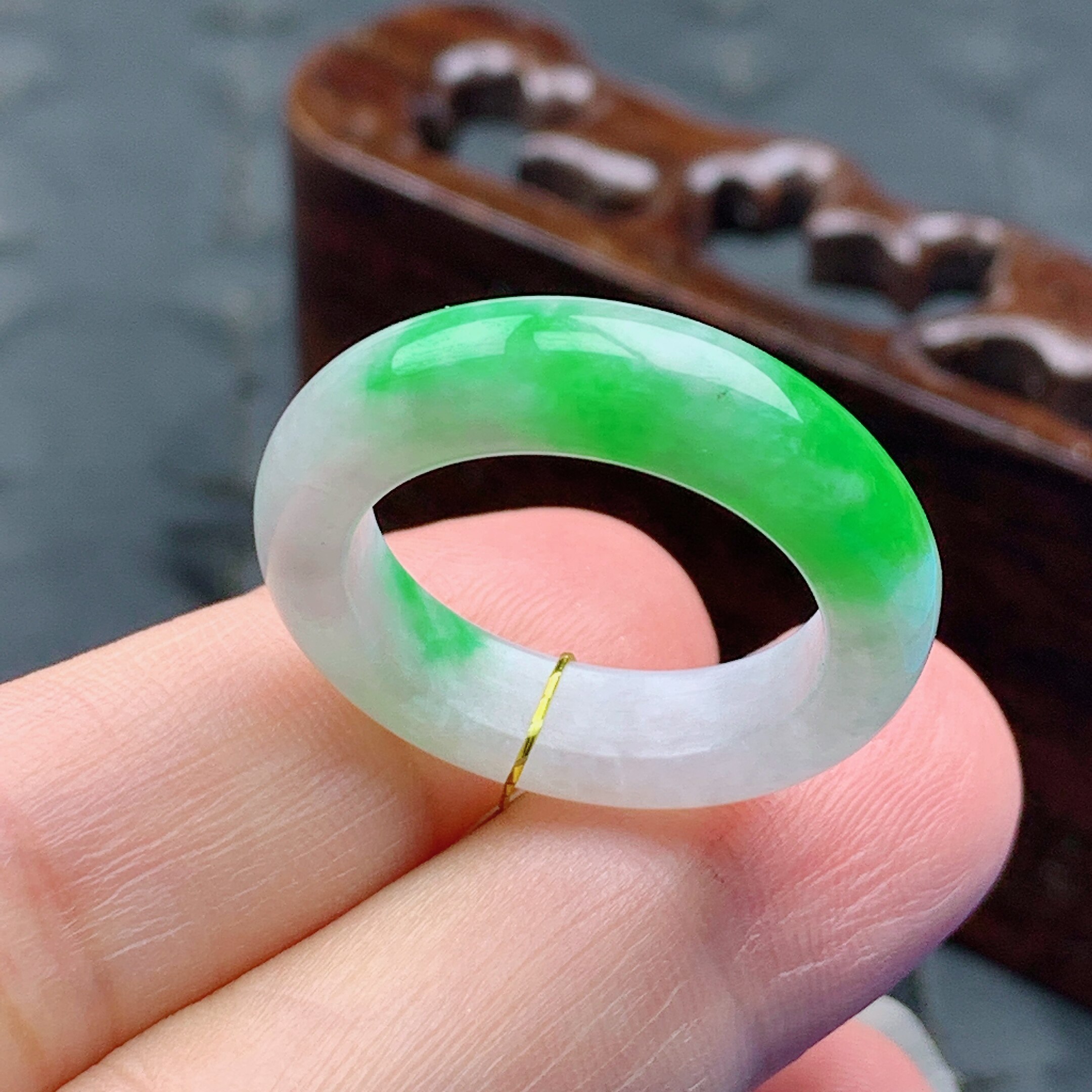 4mm 17.18号缅甸天然A货翡翠 内径18.3 飘阳绿半山水戒指 T898