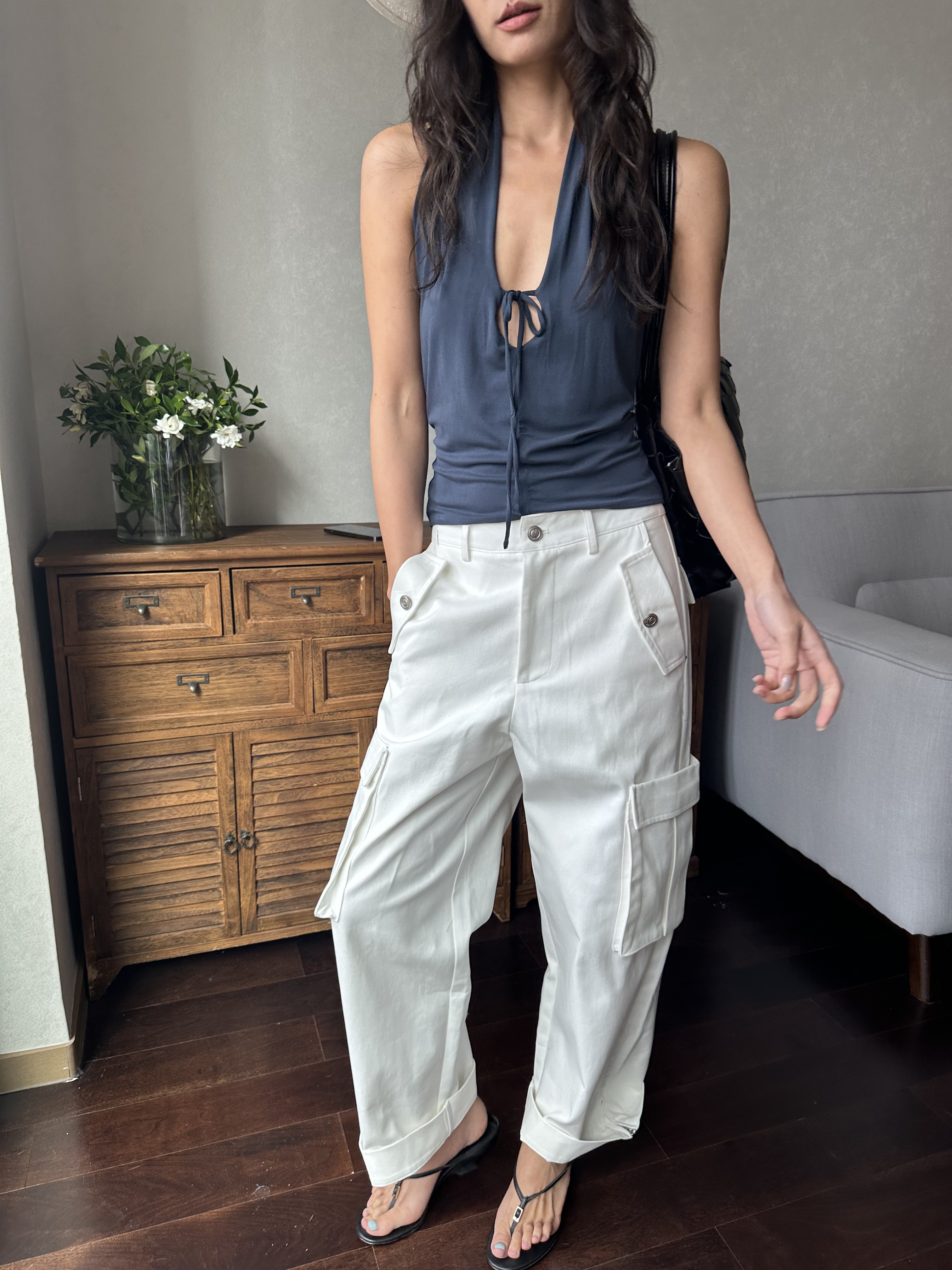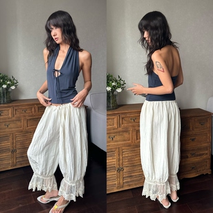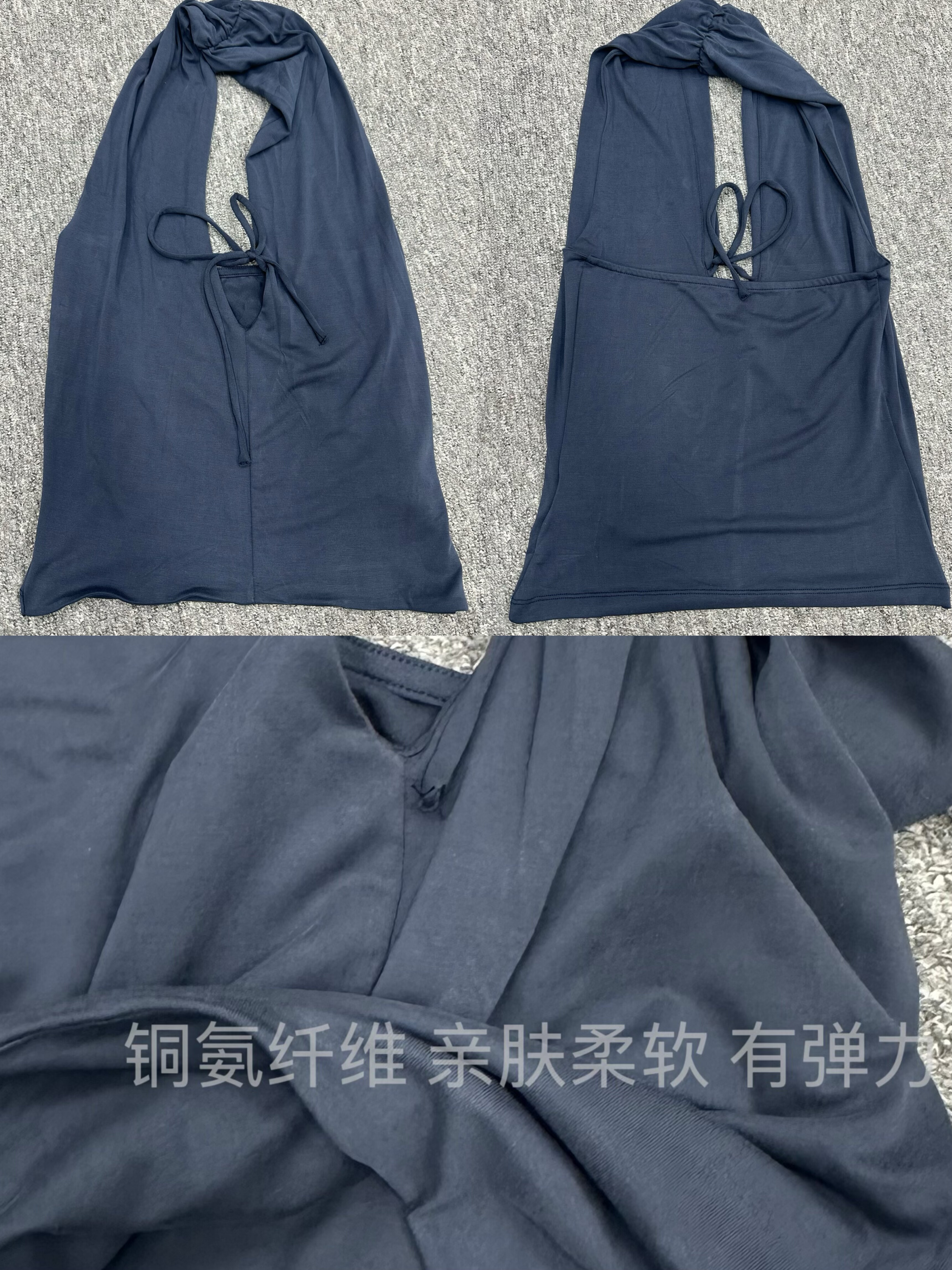 现货 铜氨砂洗质感深v系带性感辣妹露背挂脖上衣 WEEEECHAN