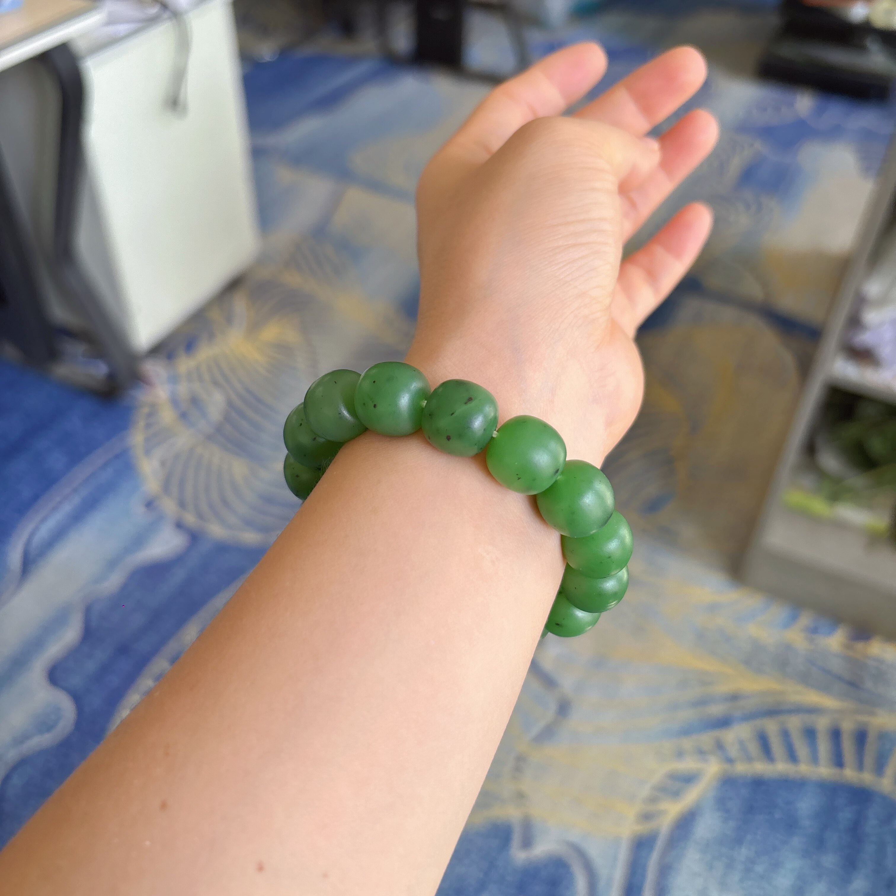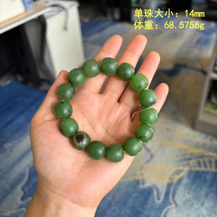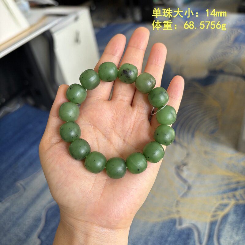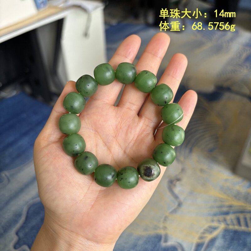 有原皮 碧玉籽料老型珠手串 朕®开仓新疆和田玉 翠阳绿 L14mm