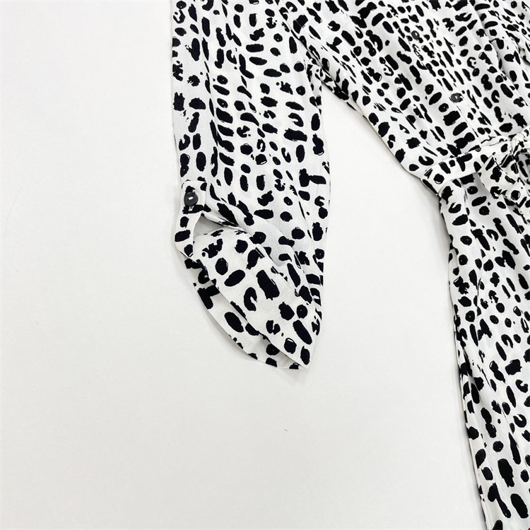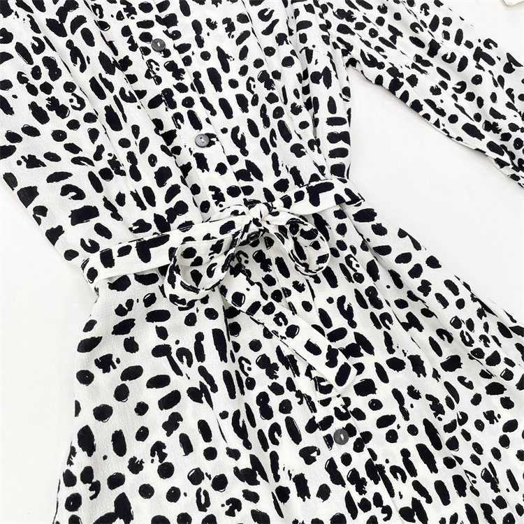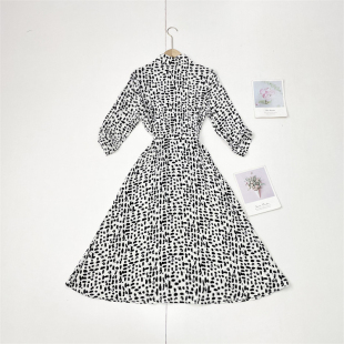 25秋新女翻领九分袖 外单纯元 收腰连衣裙 御姐通勤风 X3黑白豹纹款