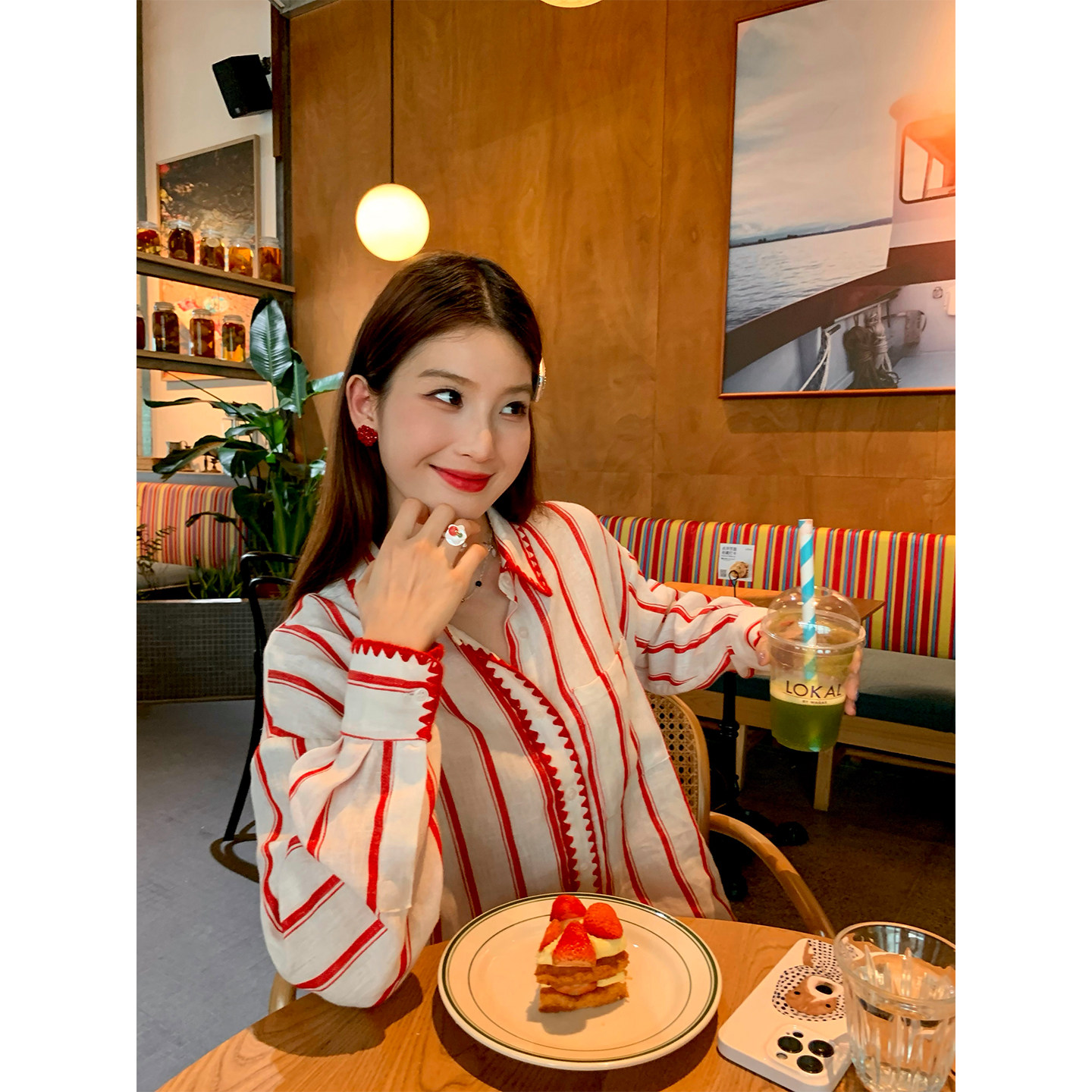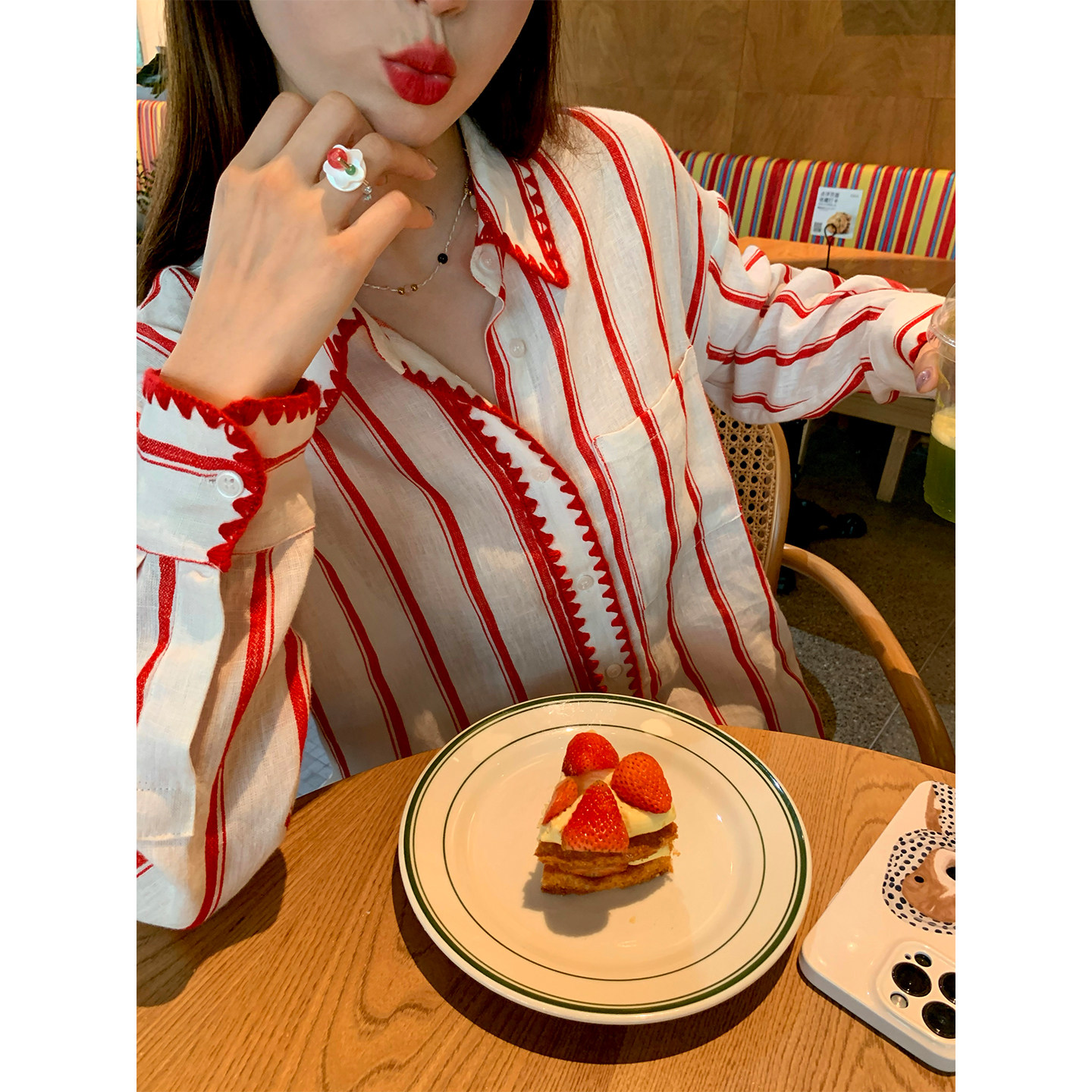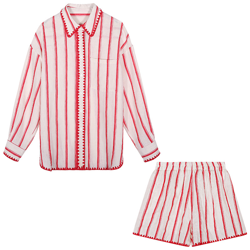 短裤 条纹两件套衬衫 宽松 2025超火穿搭一整套早秋长袖 今屿花花