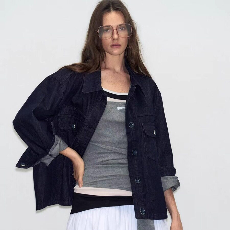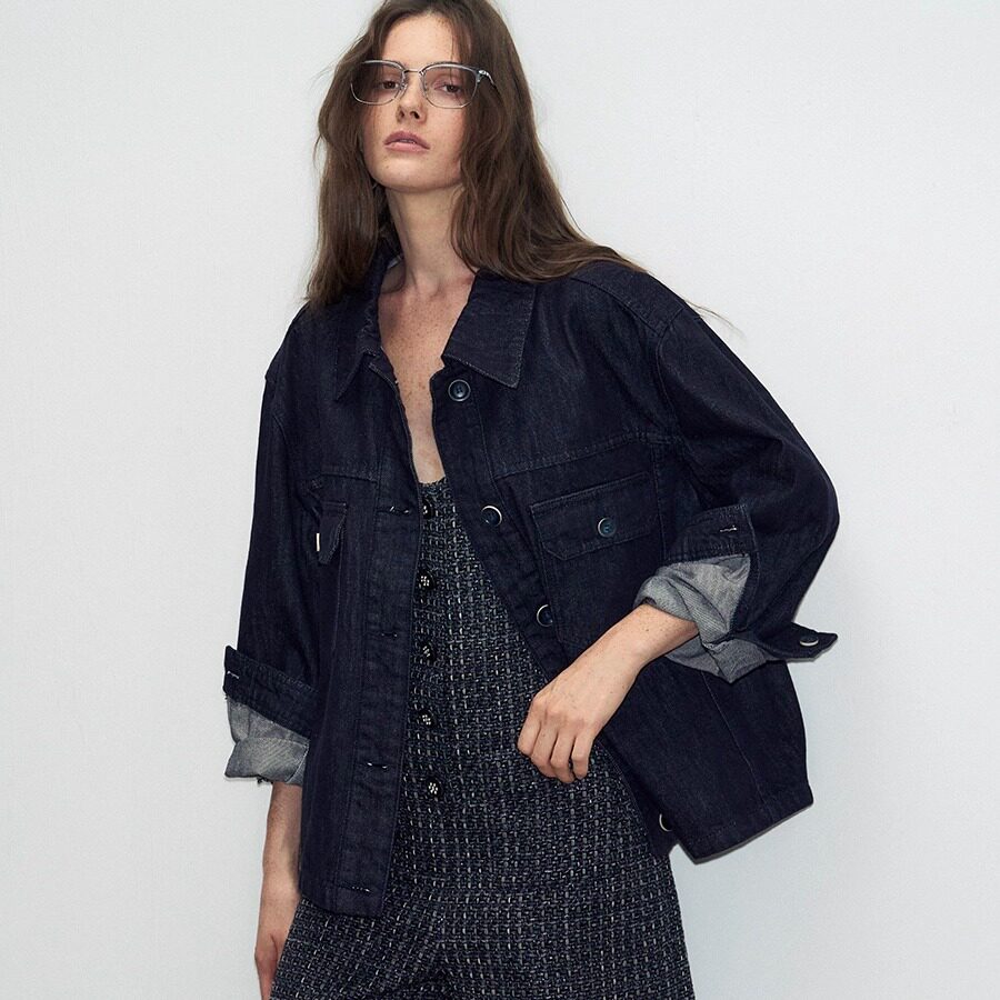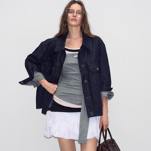 DeesseSicile深蓝色丹宁牛仔夹克时髦廓形宽松休闲百搭上衣外套女