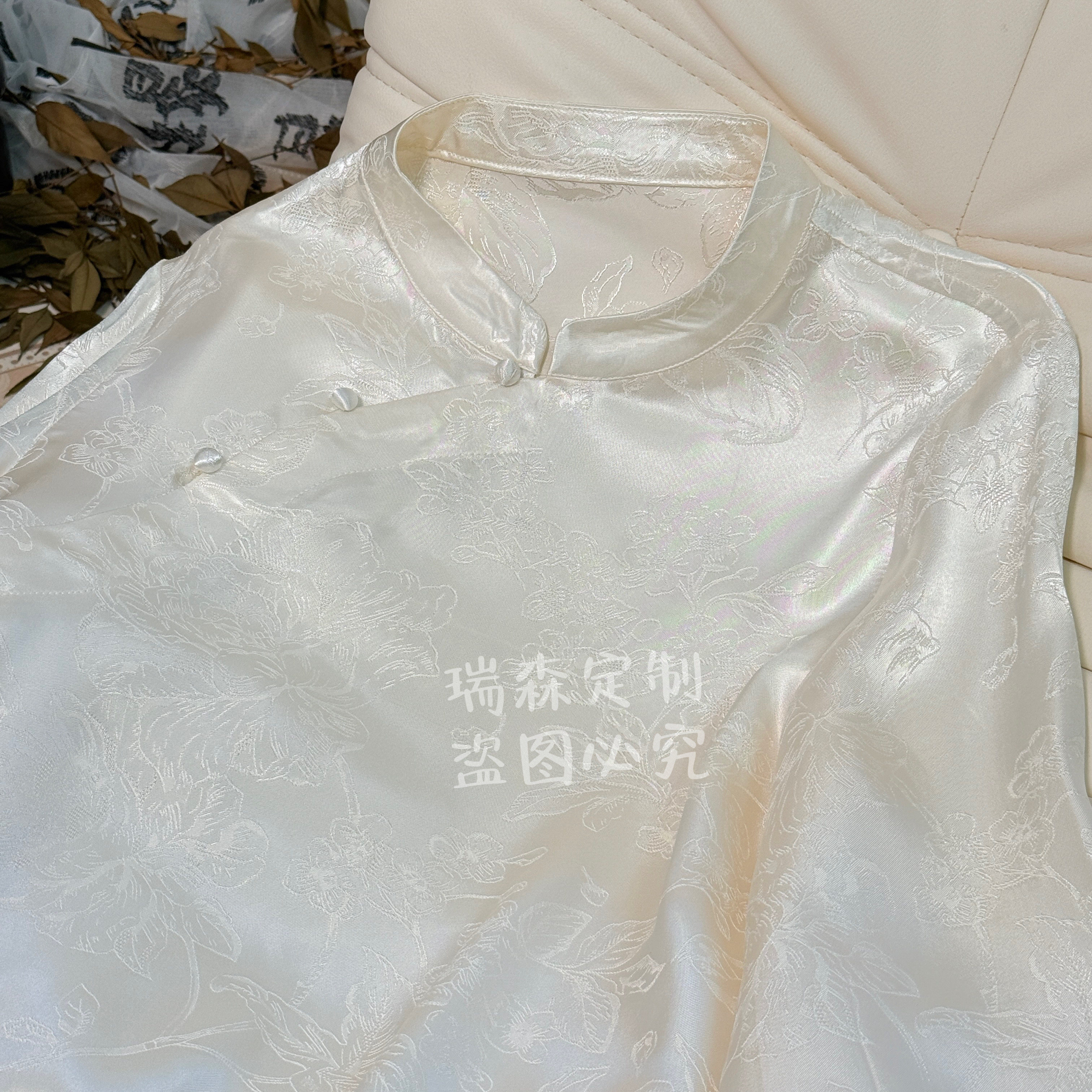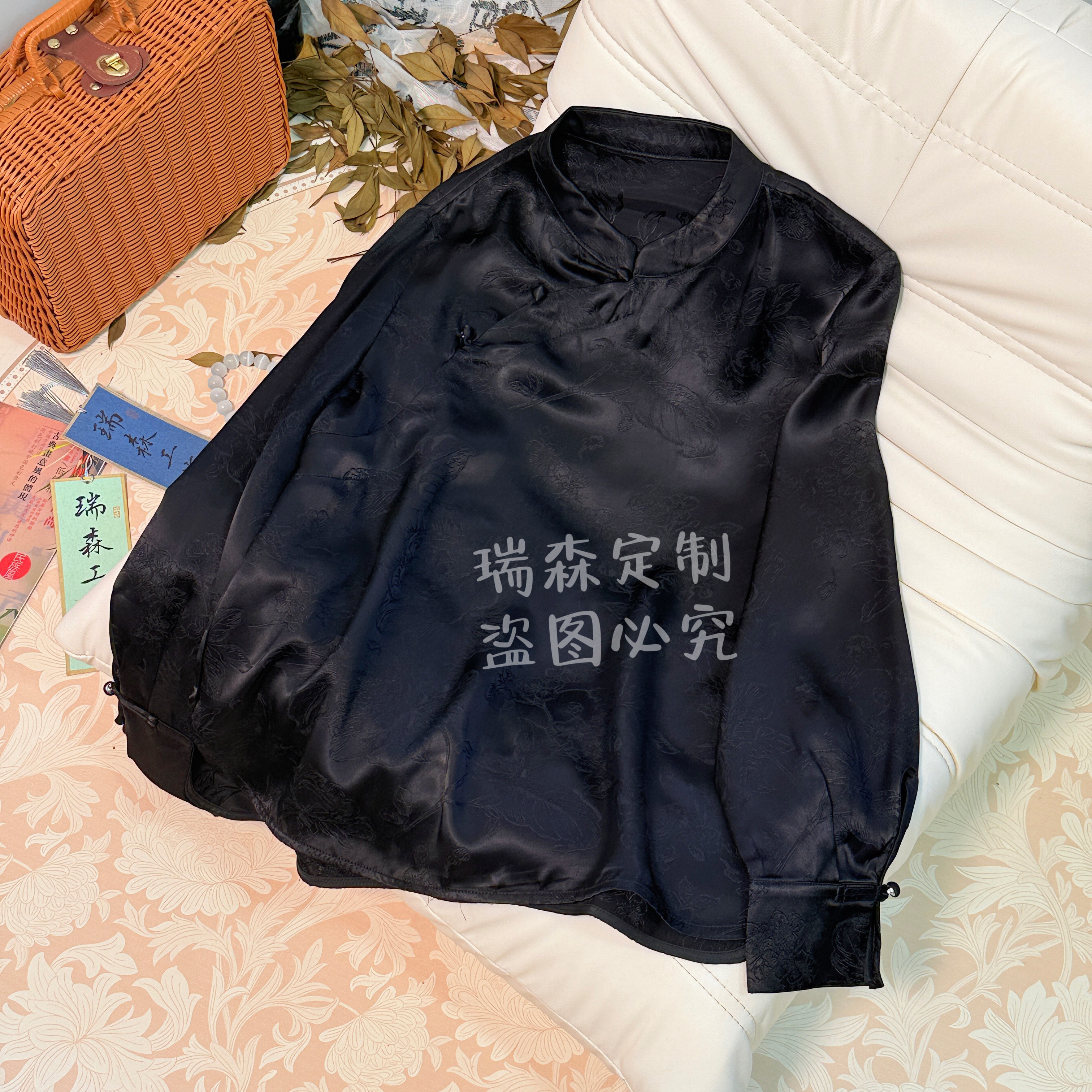 胸围98 894 纯色提花上衣 衬衫 前长58后62 早秋立领改良旗袍长袖