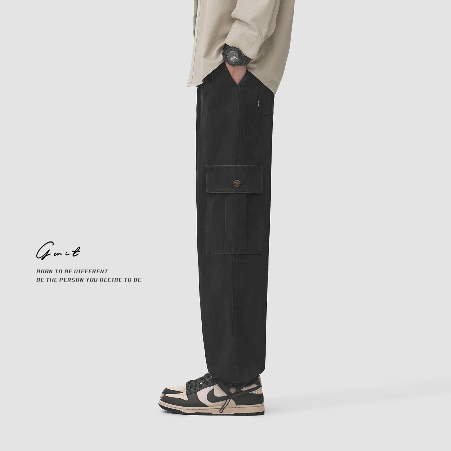 裤 休闲重磅cargo春秋美拉德重工水洗做旧抽绳束脚工装 男 美式 GWIT
