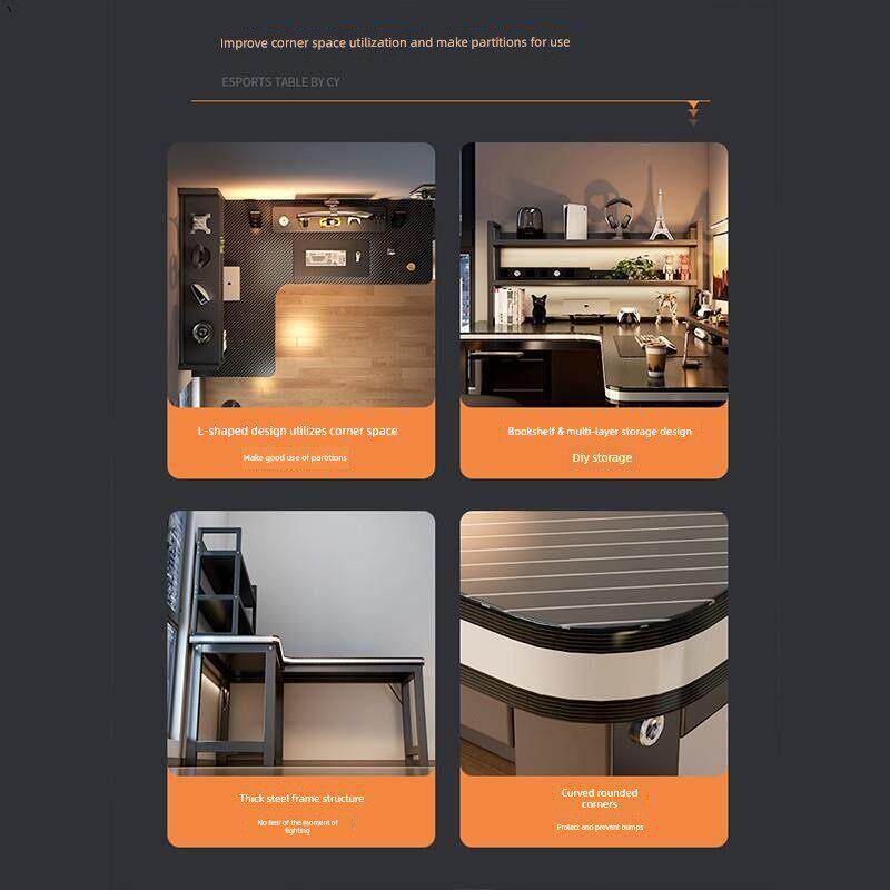 转角电竞桌电脑桌台式 家用双人书桌书架卧室拐角桌子办公桌工作台
