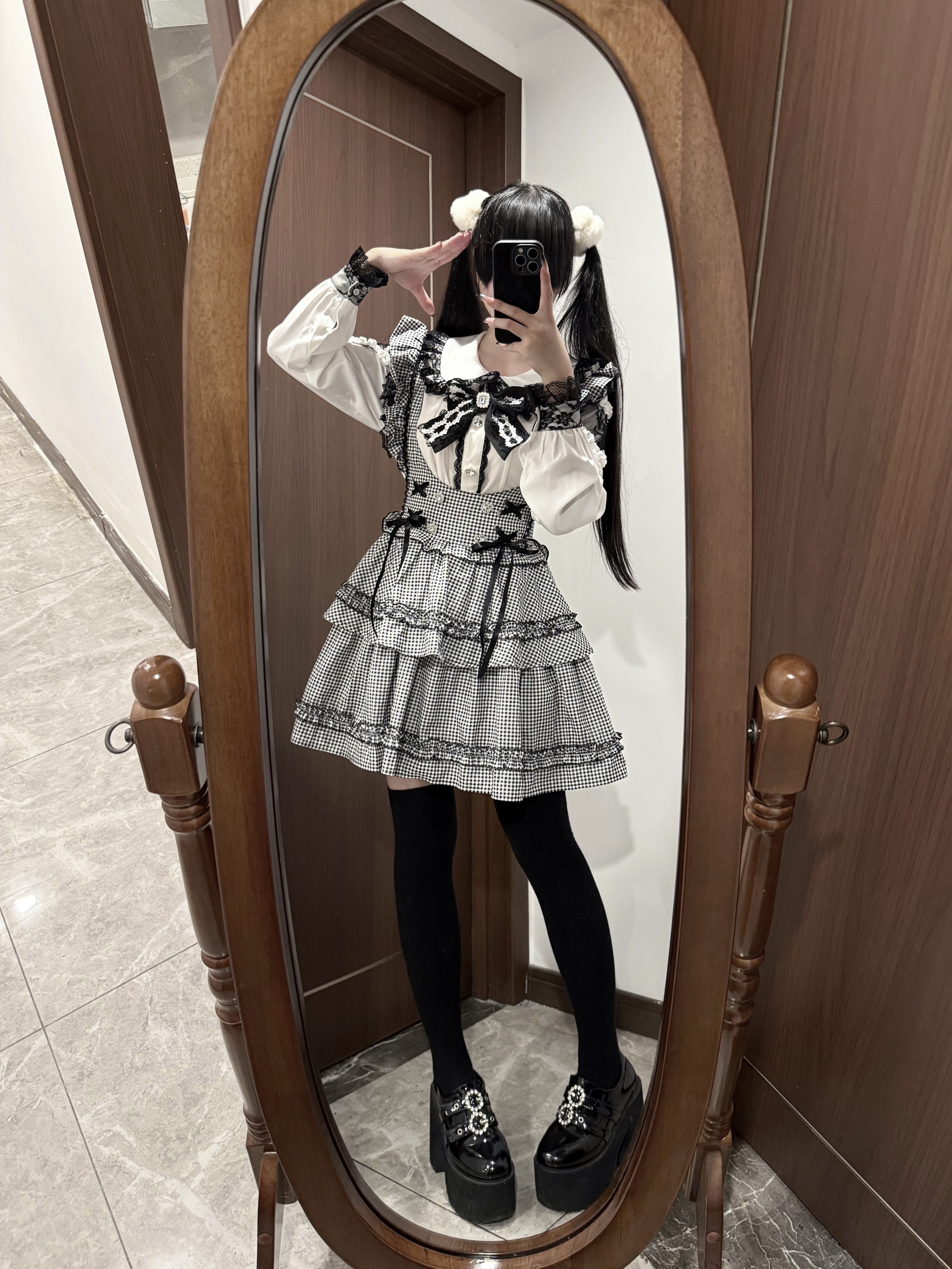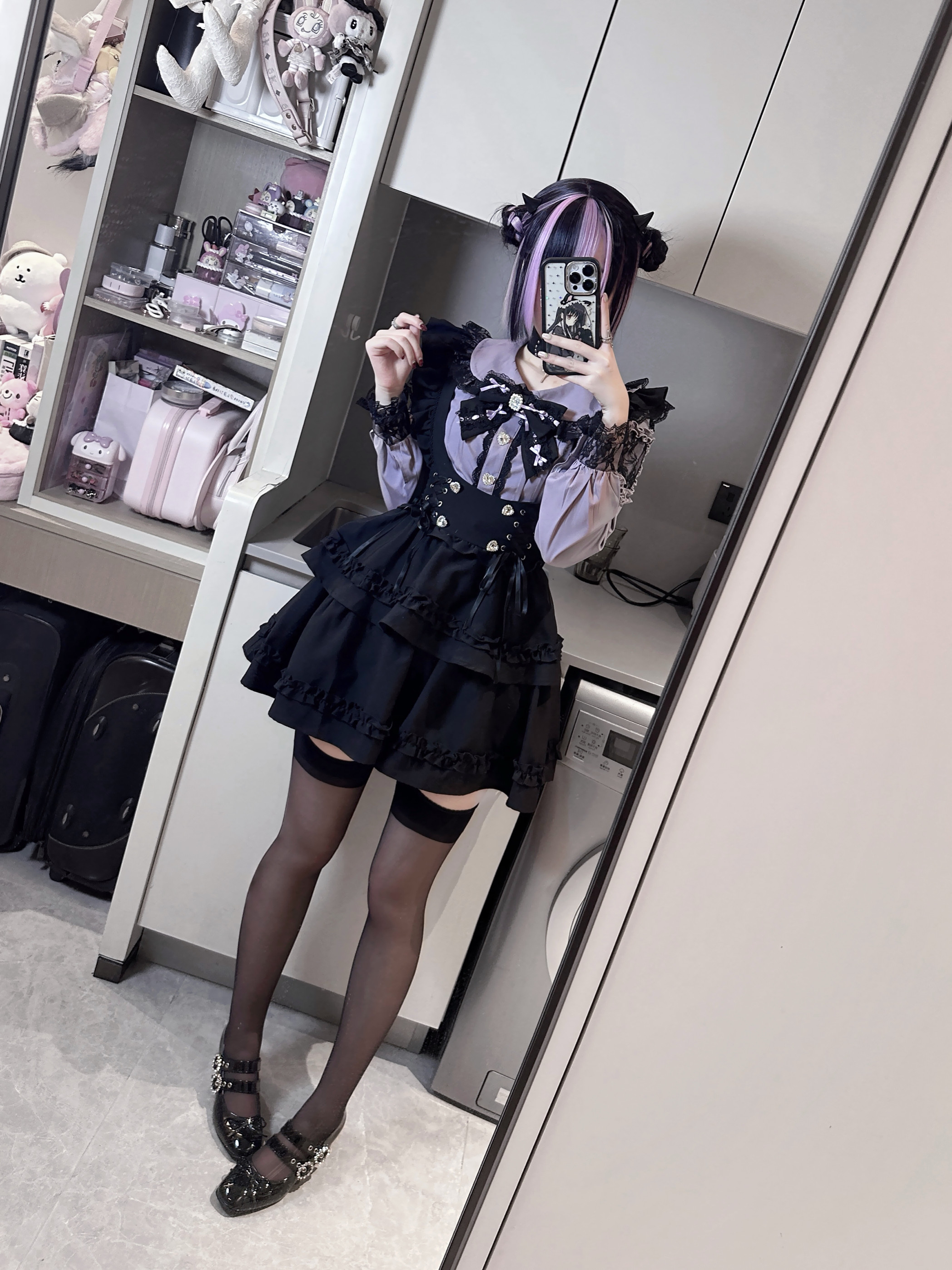 衬衣背带裙套装 量产型 紫 粉 现货 崩坏兔偶原创 黑白 蕾系