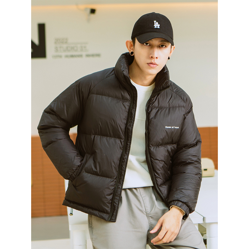 冬季 白鸭绒羽绒服男2025新款 立领无性别学生百搭外套 痞帅短款 美式