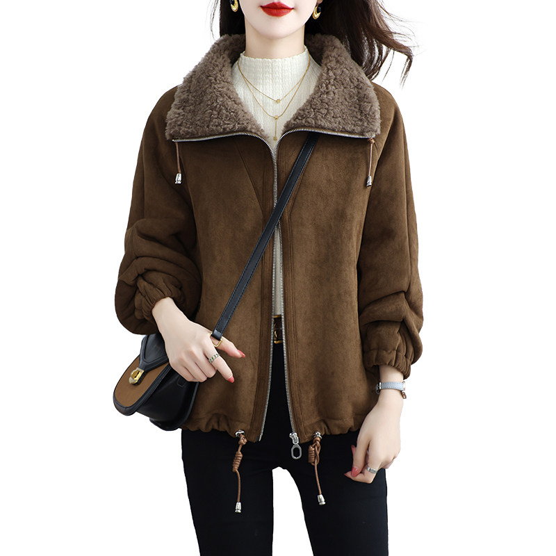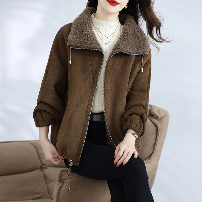 加厚麂皮绒保暖羊羔毛大衣冬季 2025新款 海宁颗粒绒皮草外套女短款