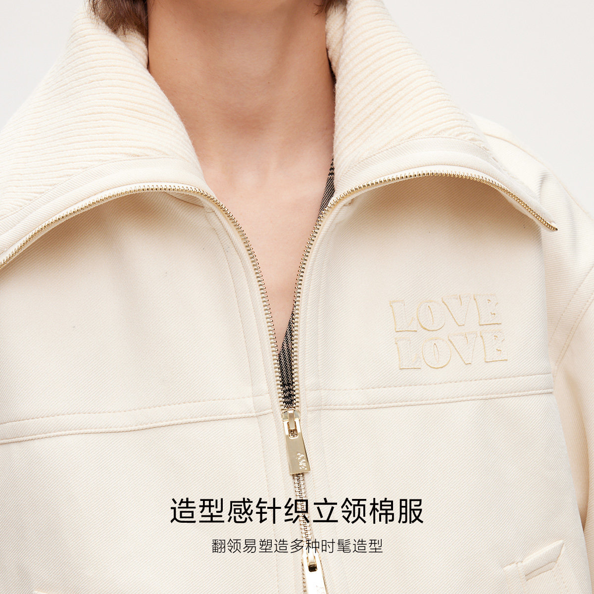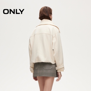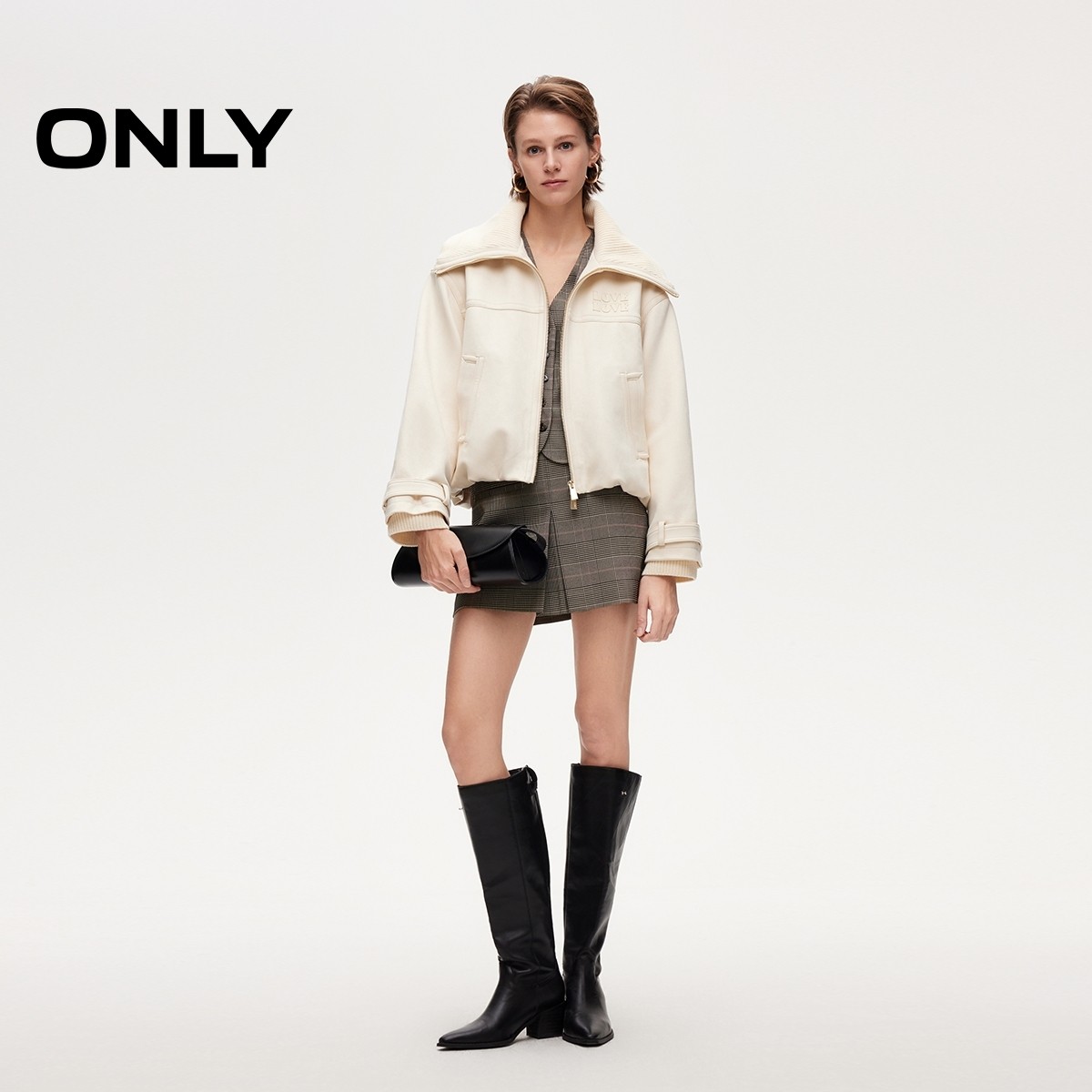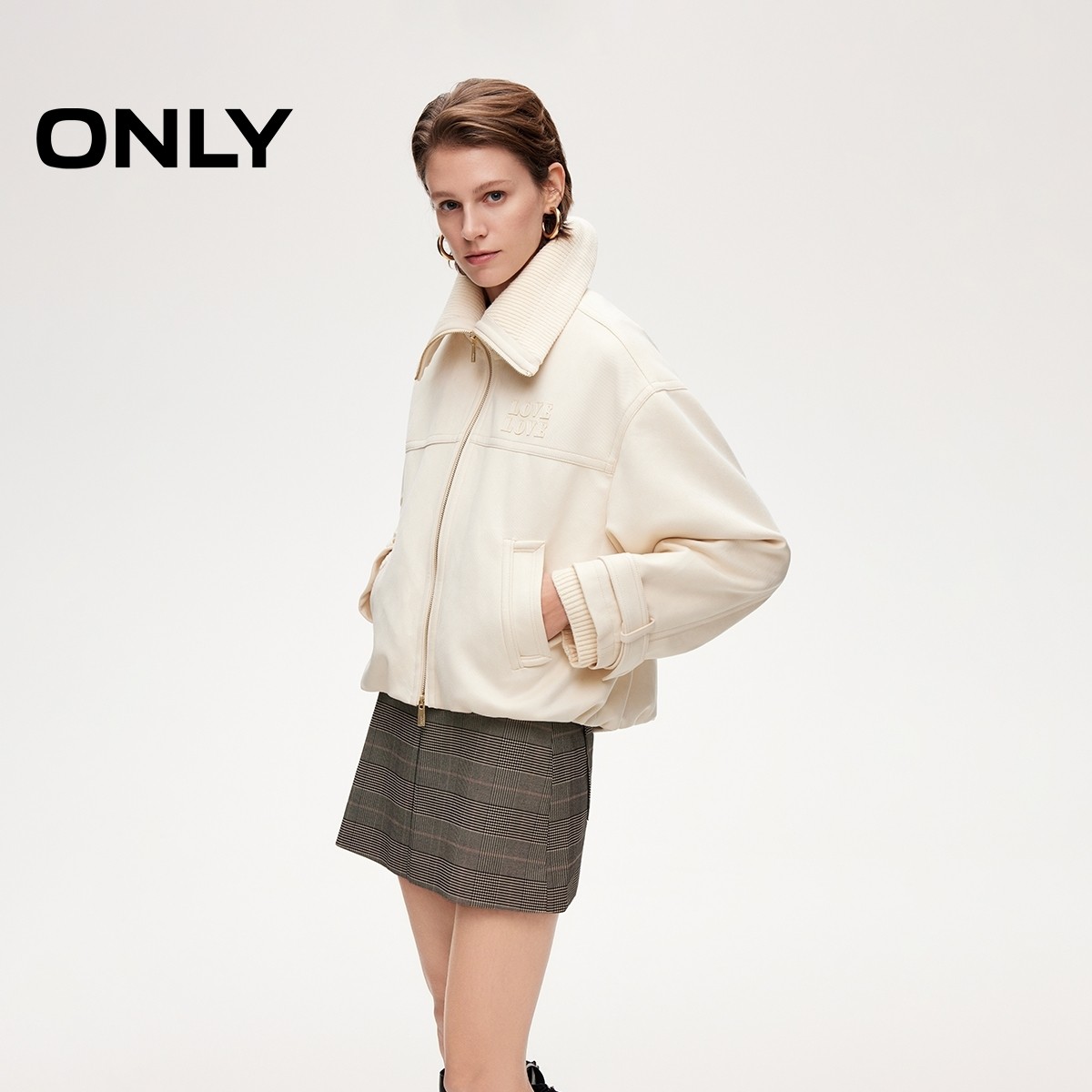ONLY2025冬季 大翻领亲肤针织挡风拉链纯色夹克花苞下摆风衣女 新款