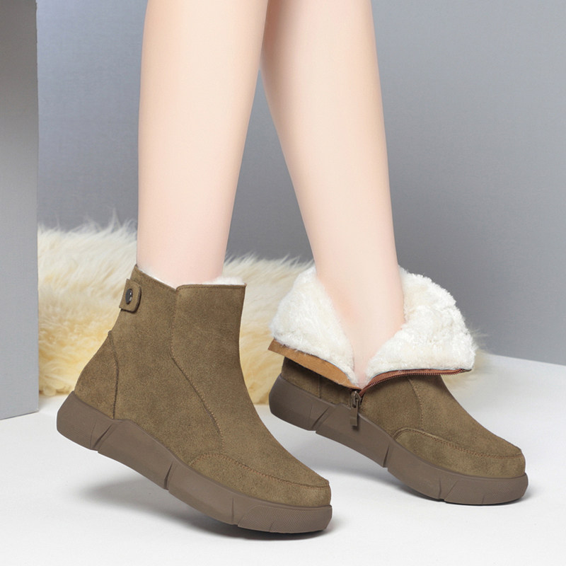 拉链加绒雪地靴加厚保暖防滑妈妈棉靴女鞋 老北京棉鞋 新款 2025冬季
