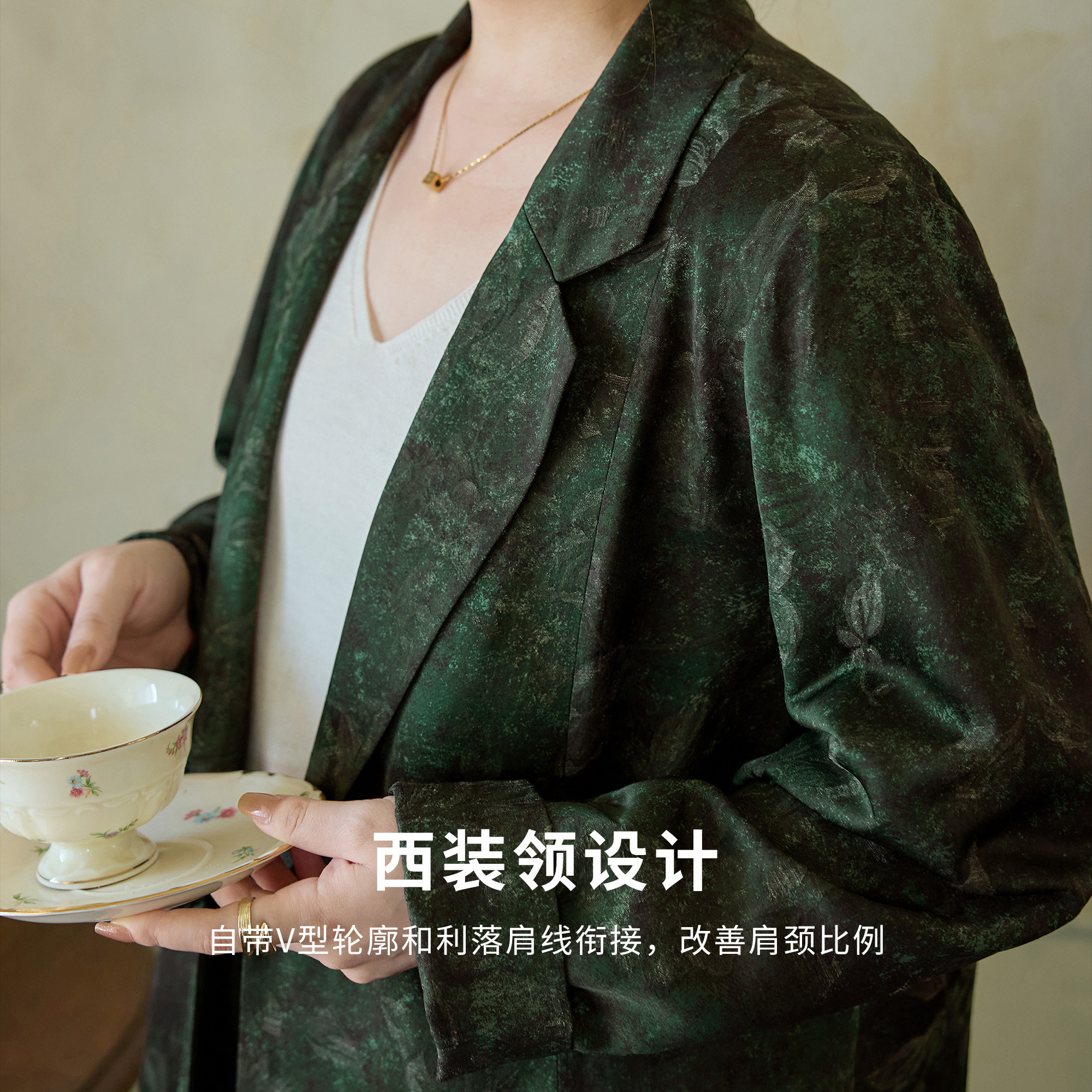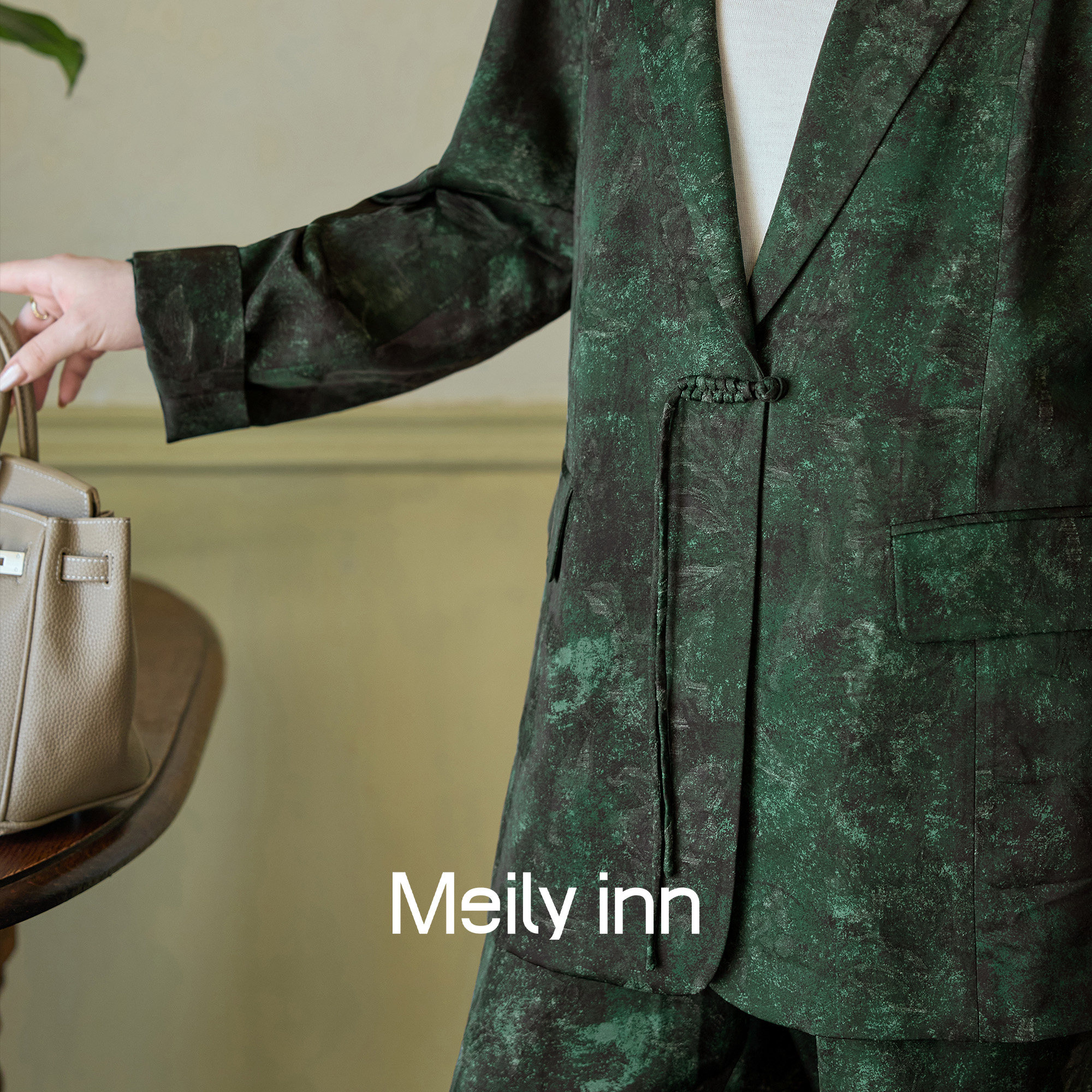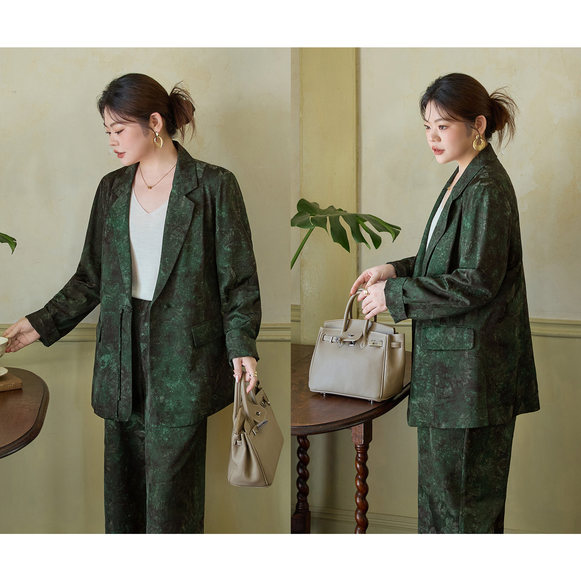 人丝羊毛混纺 新款 美丽客栈大码 2025秋装 西服外套阔腿裤 女装