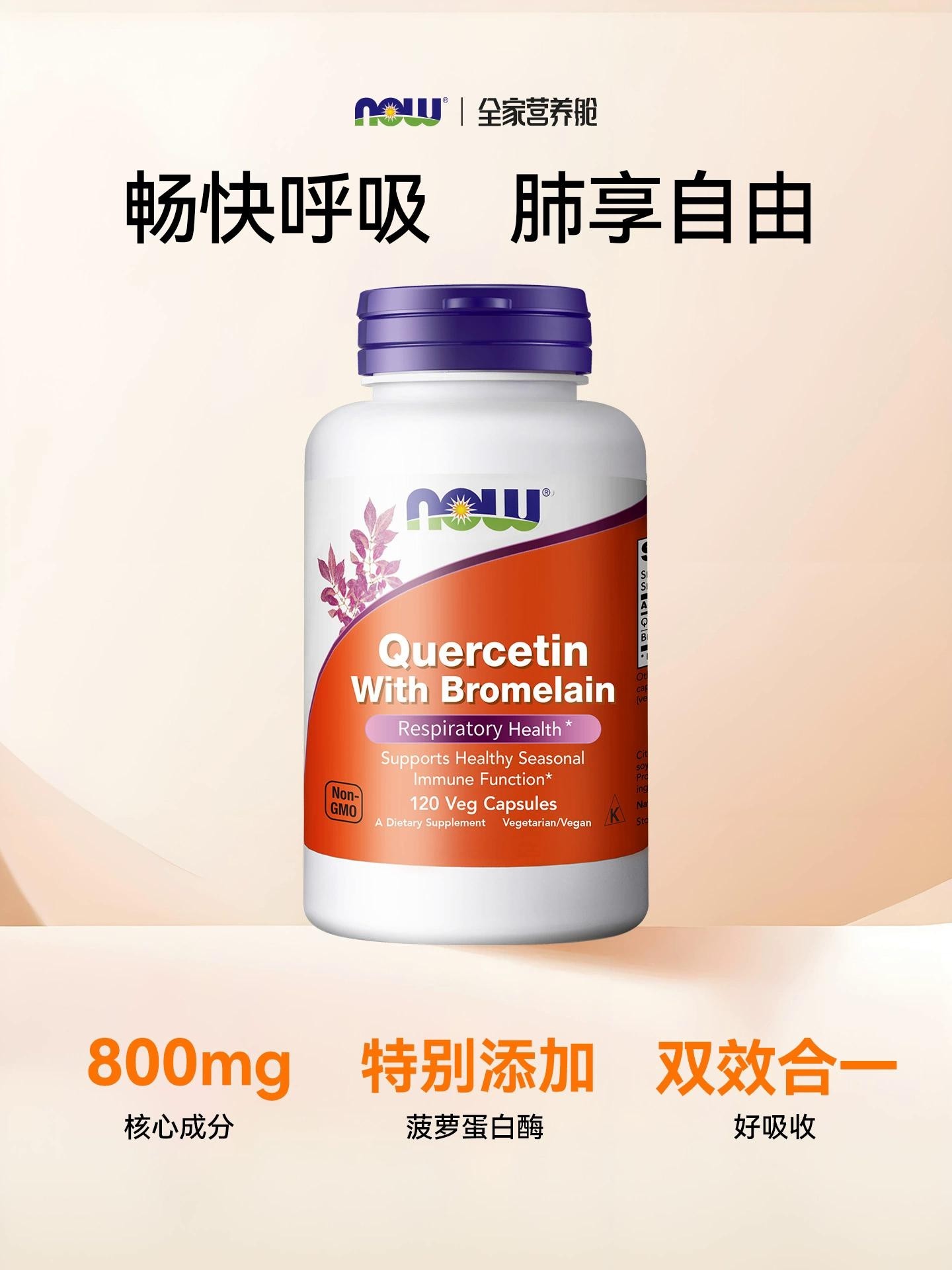 德国VIKpro进口专利高含量槲皮素菠萝蛋白酶润肺部保健品60粒