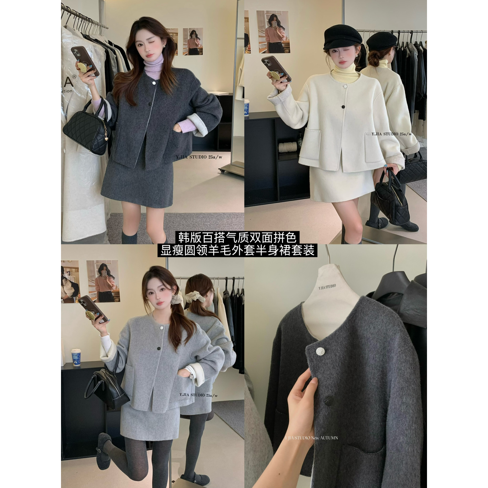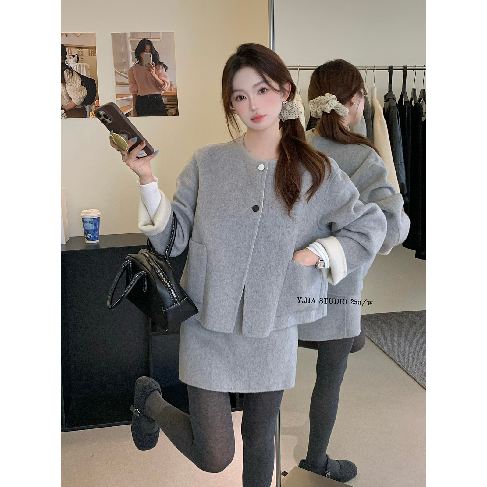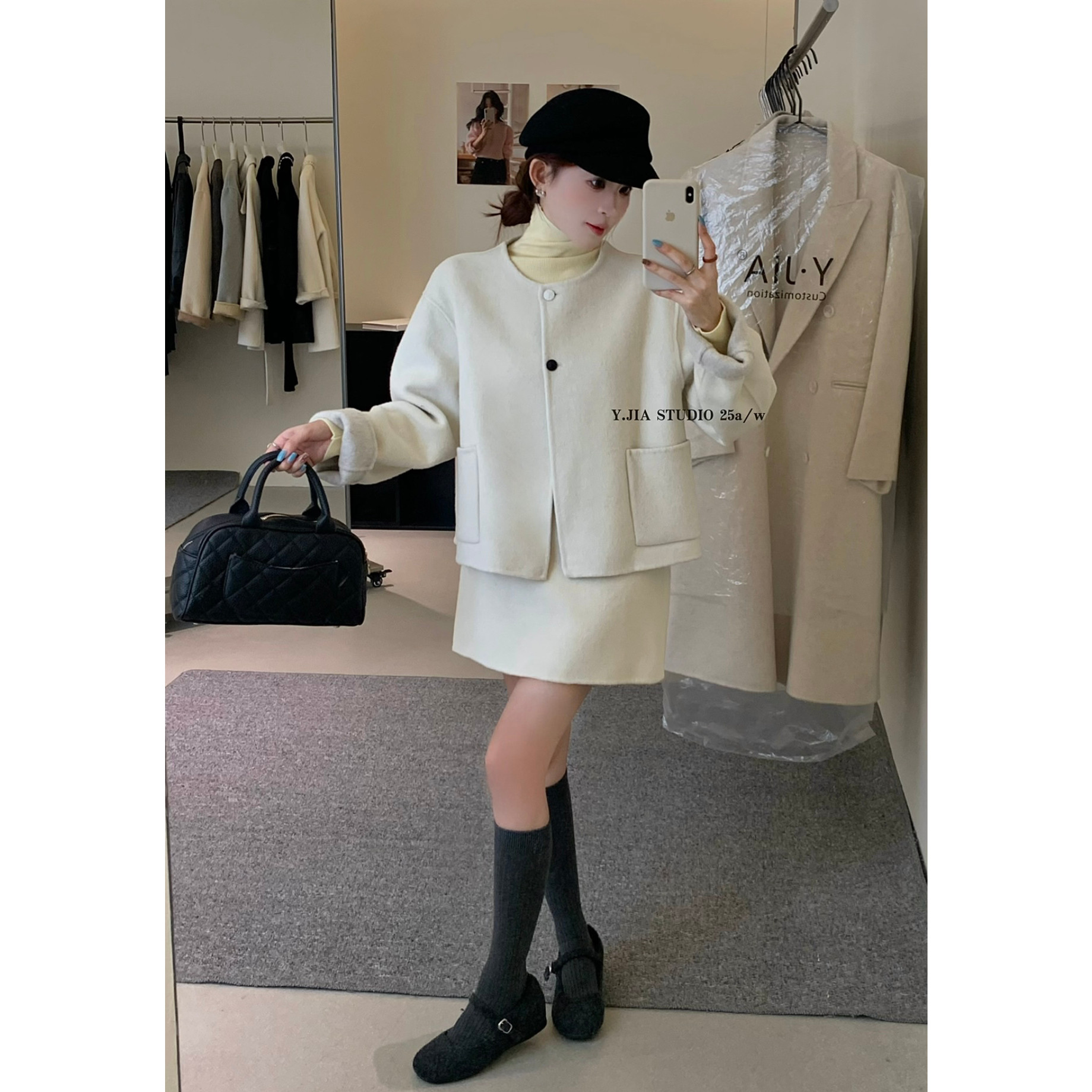 高腰半身裙两件套装 老钱风气质百搭双面羊毛呢外套 伊嘉韩版 YJIA
