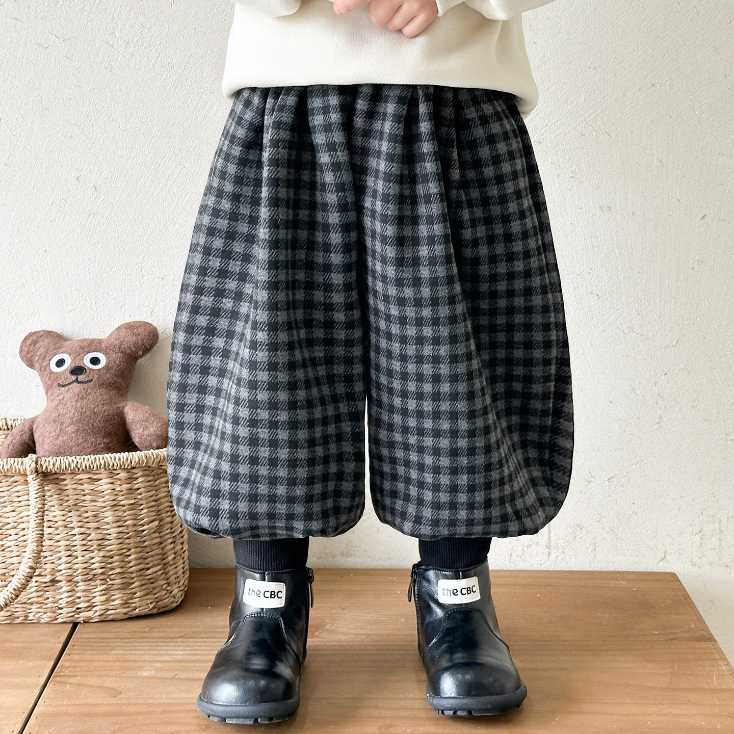 子2025新款 格子童装 秋冬季 儿童束脚哈伦裤 潮 宝宝灯笼裤 男童加绒裤