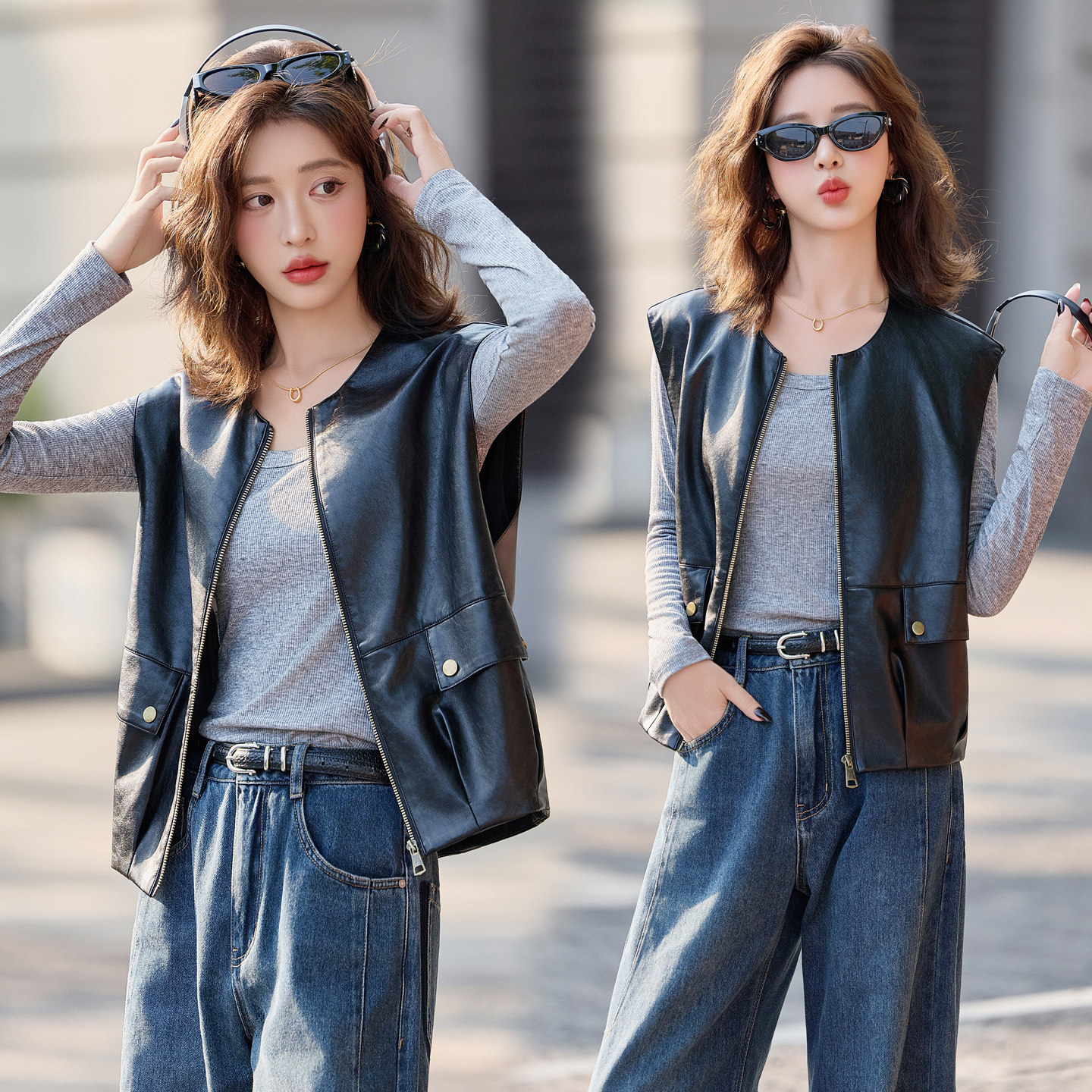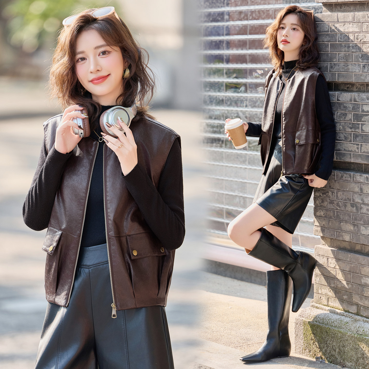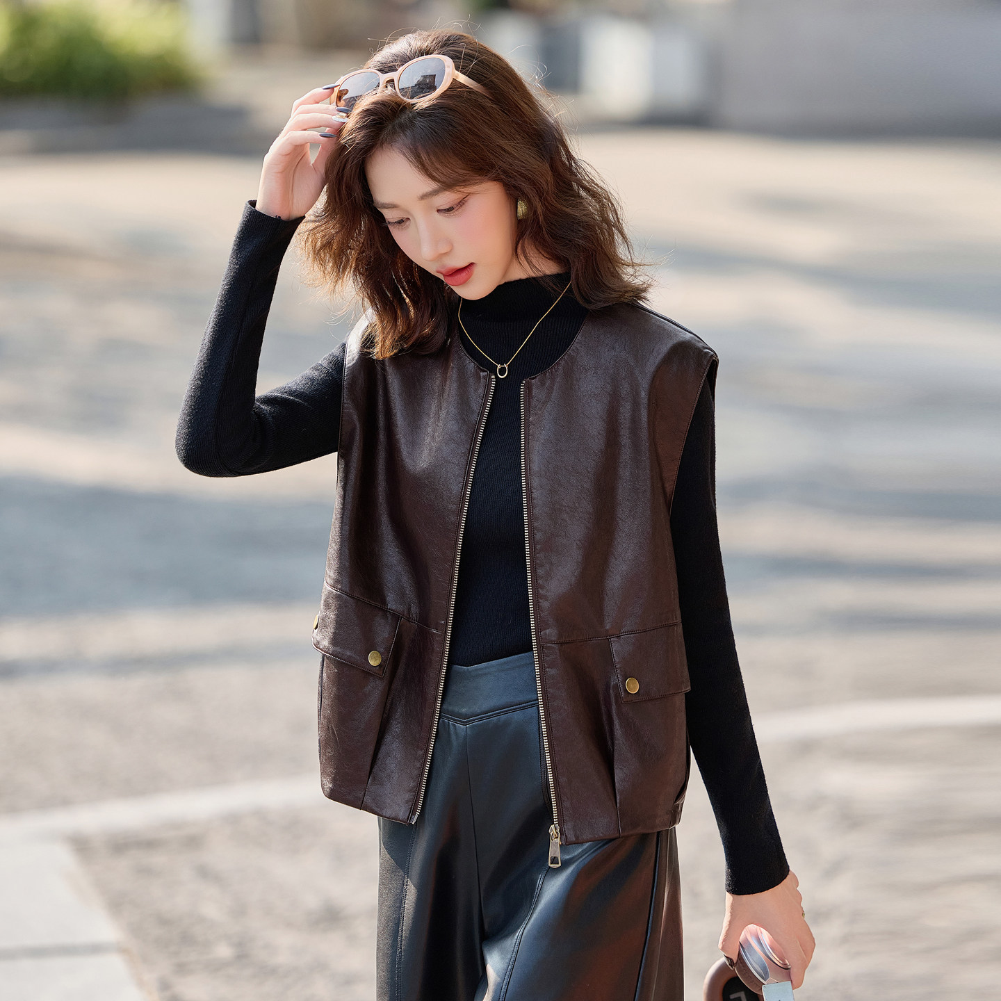 海宁真皮2025超火皮外套马甲女外穿早秋皮衣爆款 绵羊皮背短心马夹