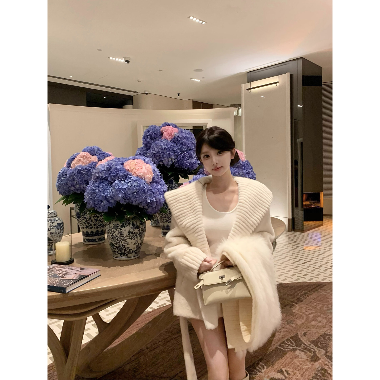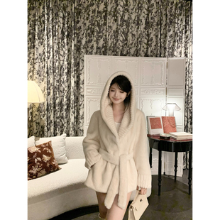 翻领外套 Hotdog 仿真貂仿环保皮草 冬日月光 绑带女 热狗很辣