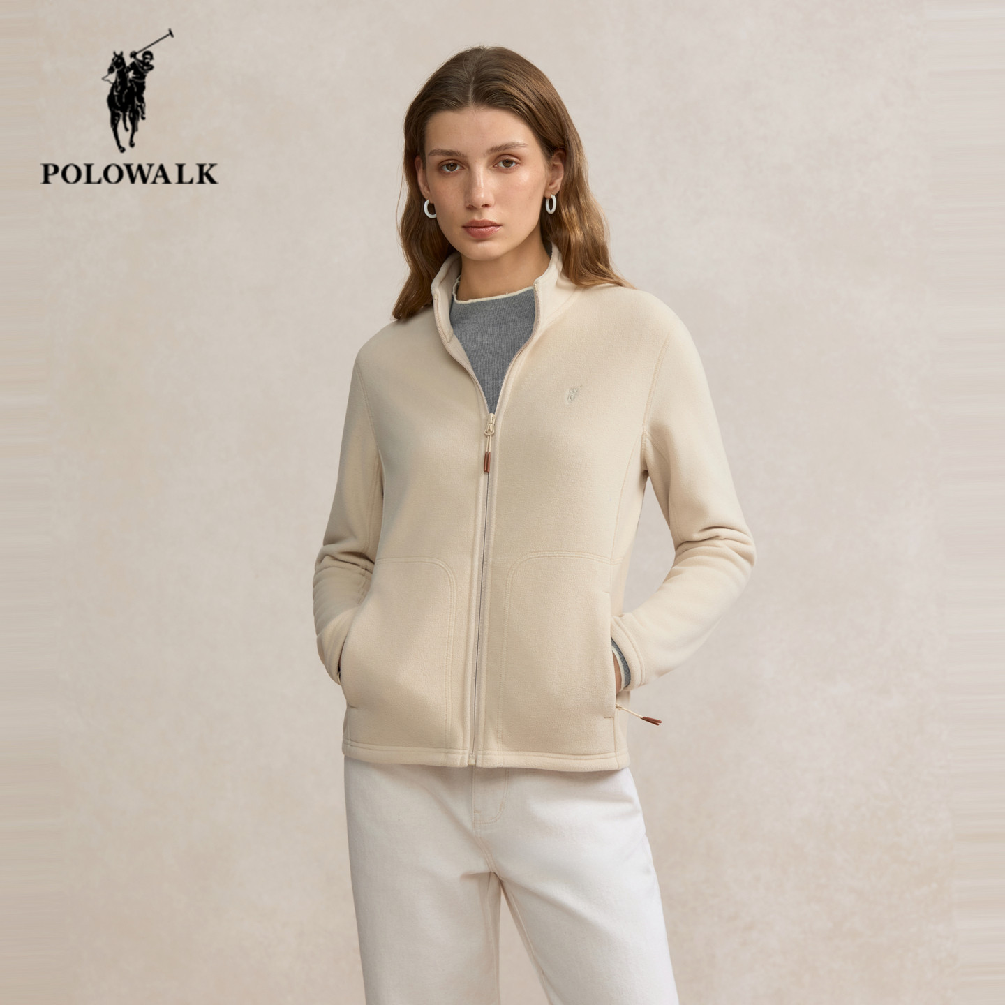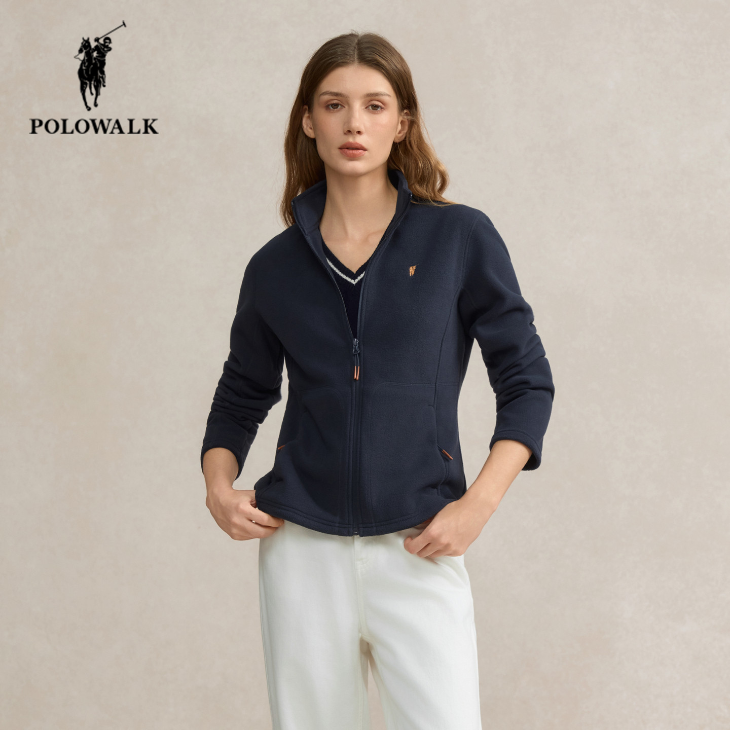 修身 保罗女装 保暖休闲立领加绒上衣 新款 POLOWALK摇粒绒外套女秋季