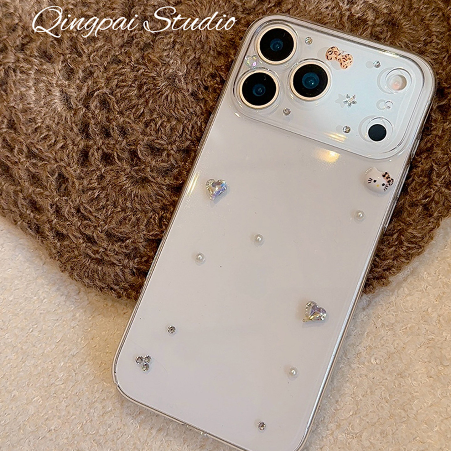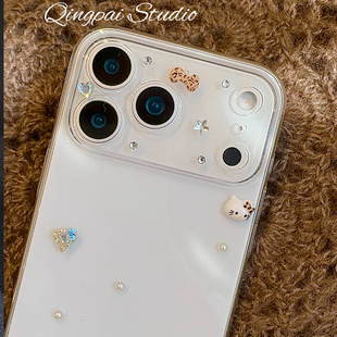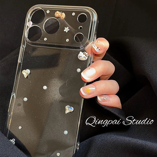 轻派透明立体银色爱心水钻适用苹果17promax手机壳iphone16pro新款 14简约高级感小众13高清壳全包硬壳 15女款