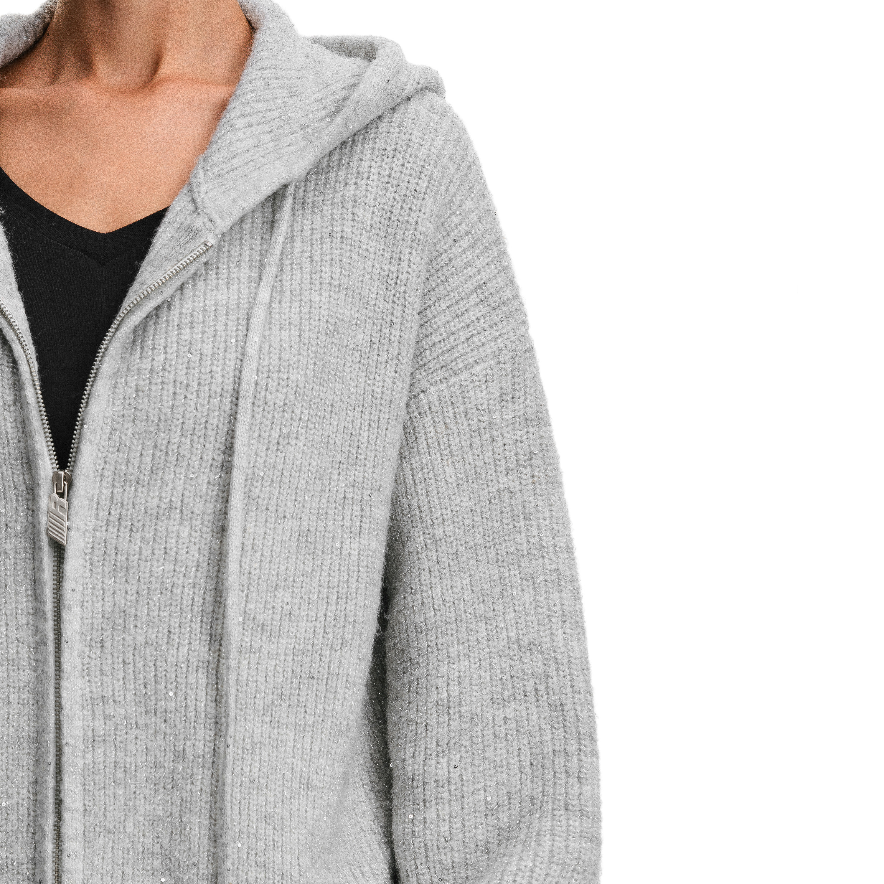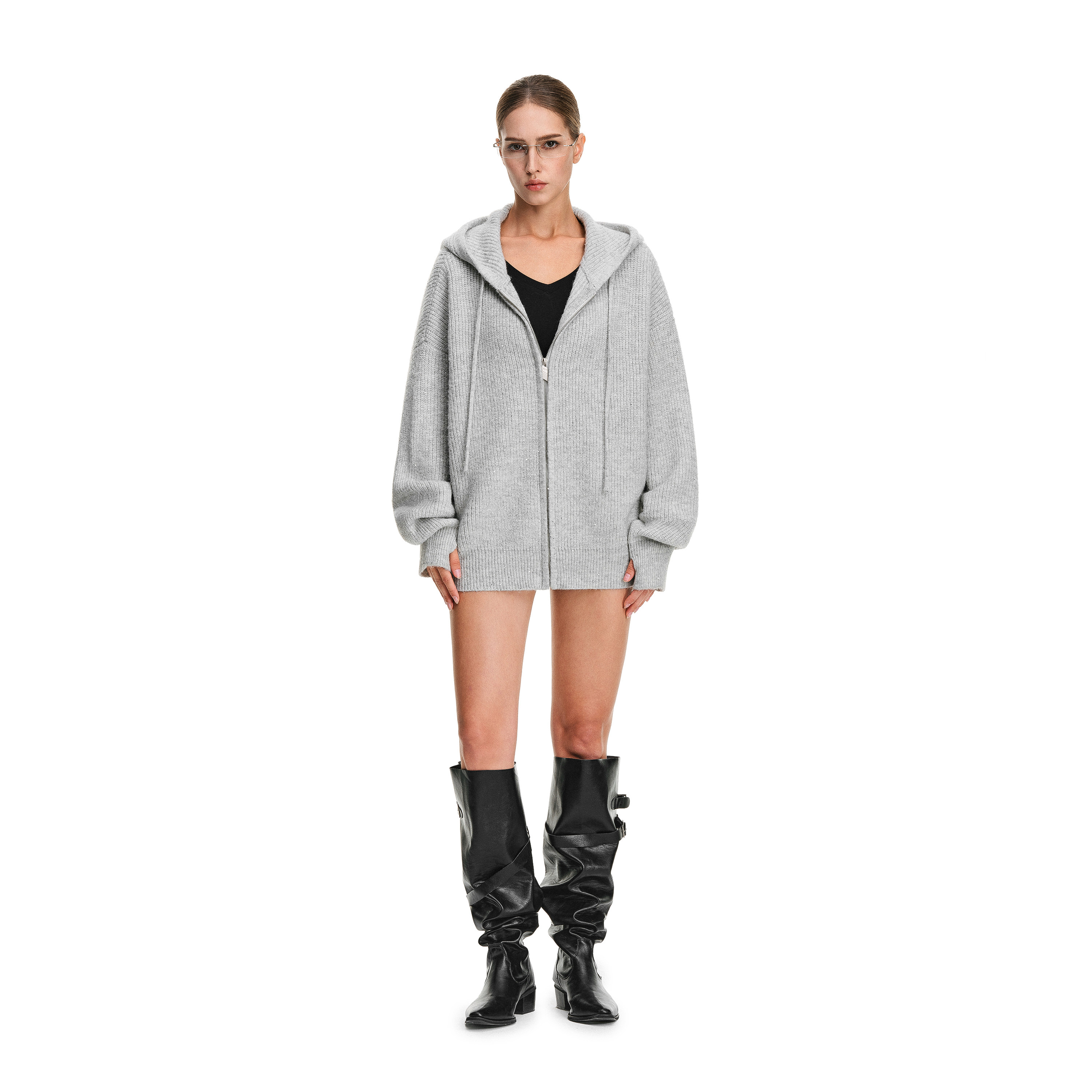连帽拉链开衫 2026新款 外套 慵懒风细闪针织毛衣女春季 FDR官方店