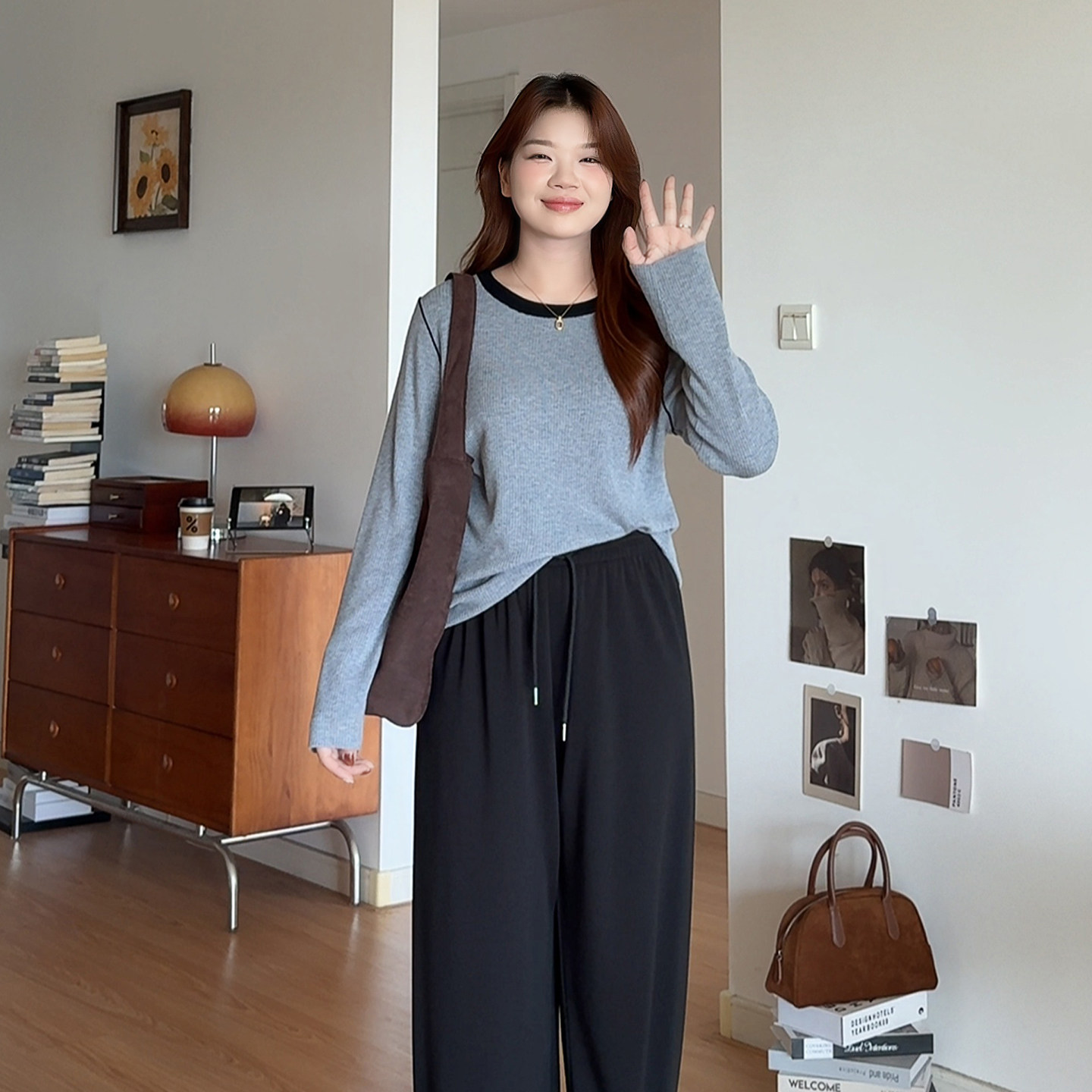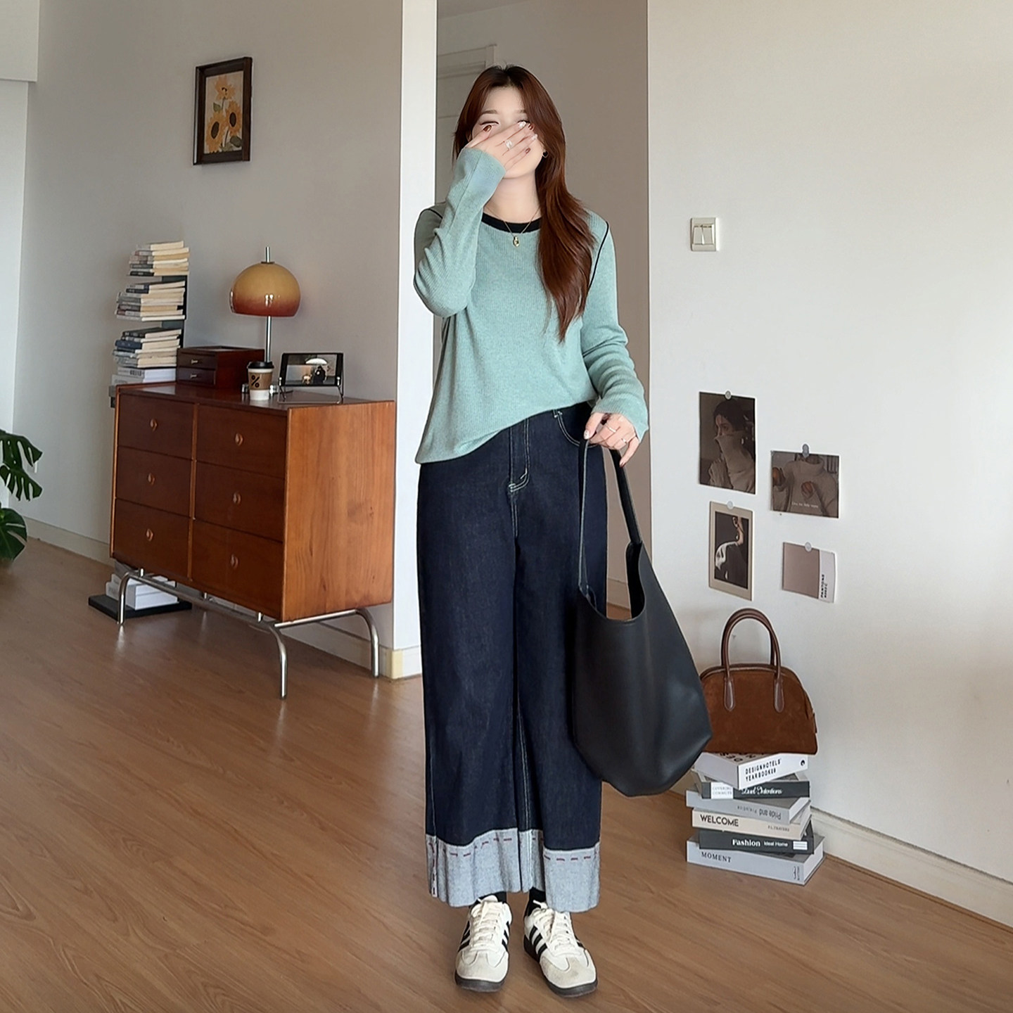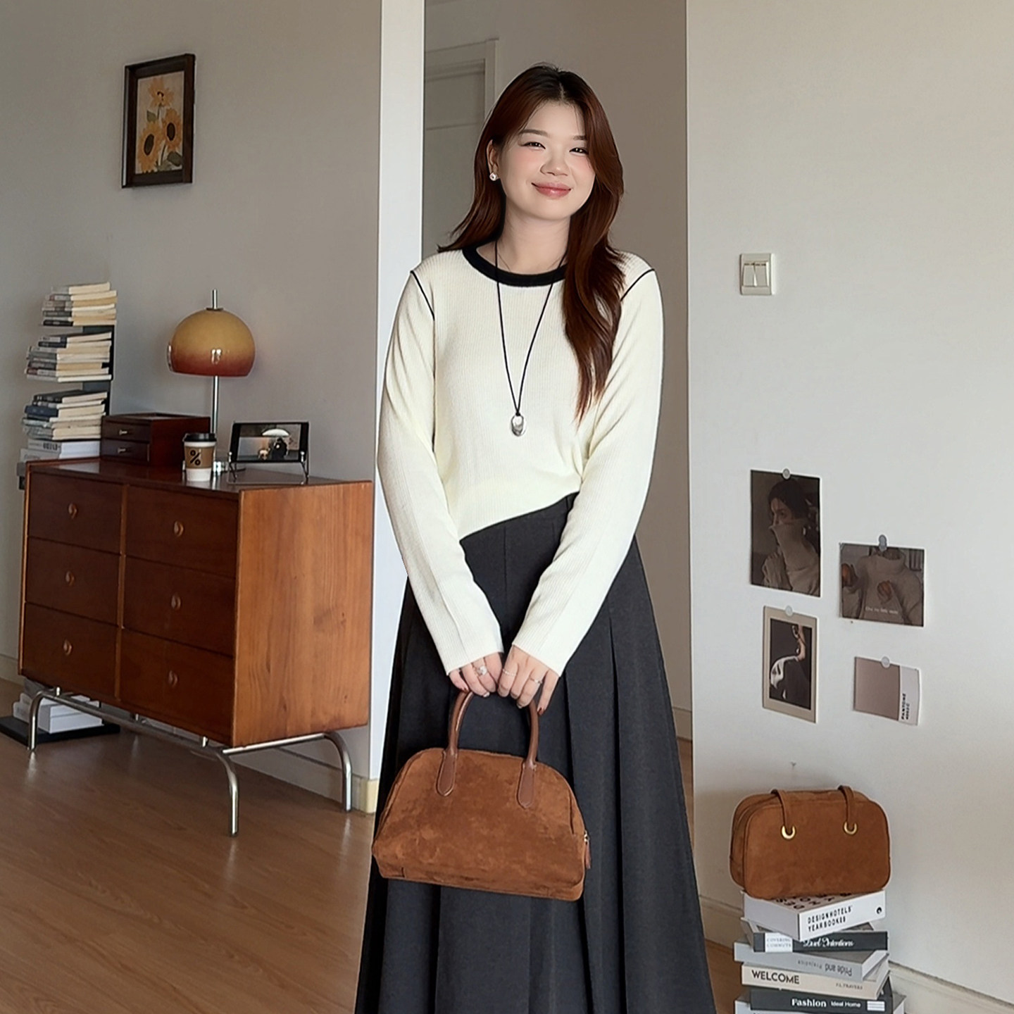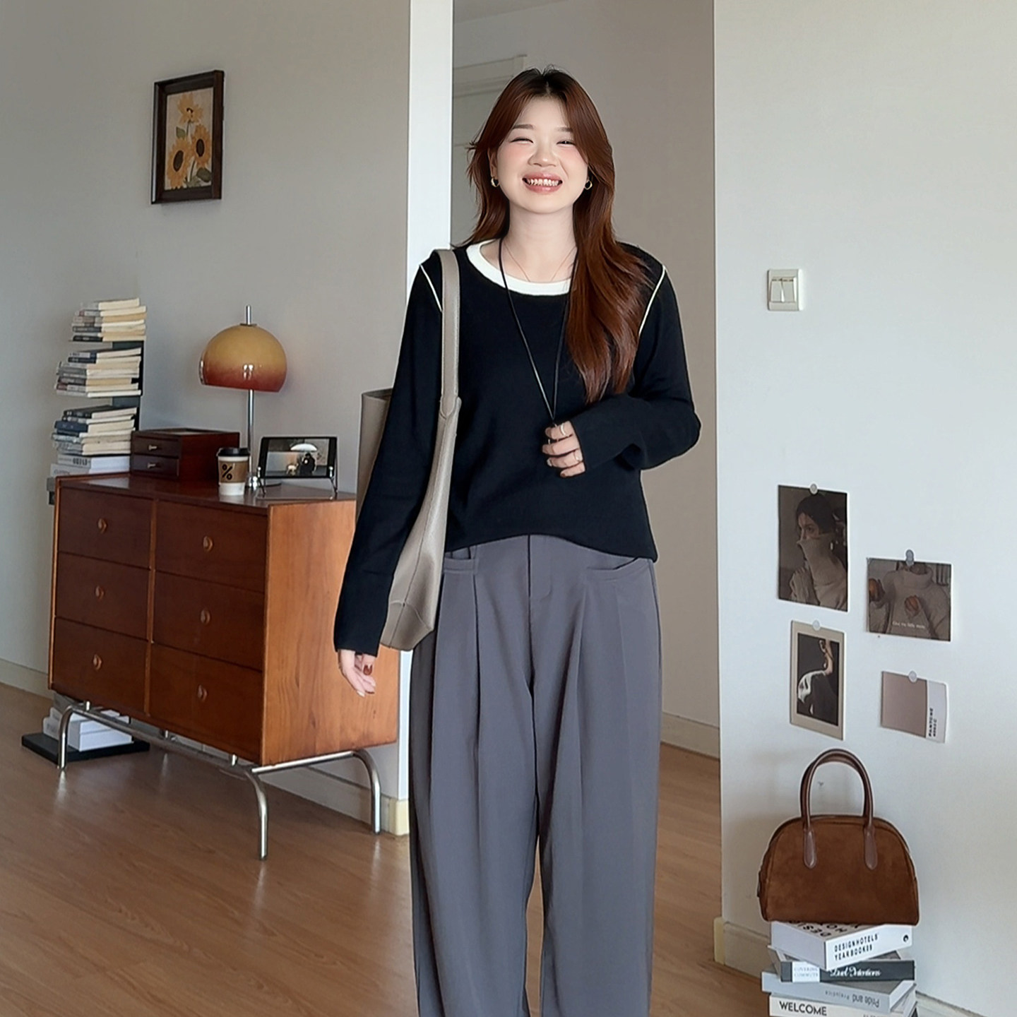 2026撞色内搭针织衫 微胖 胖mm春装 女装 显瘦遮肚上衣3172 喵喵大码