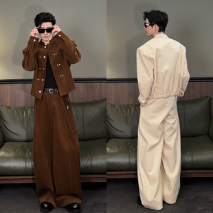 男士 高端时尚 套装 韩版 情侣款 新款 高级感百搭外套休闲裤 两件套 秋季