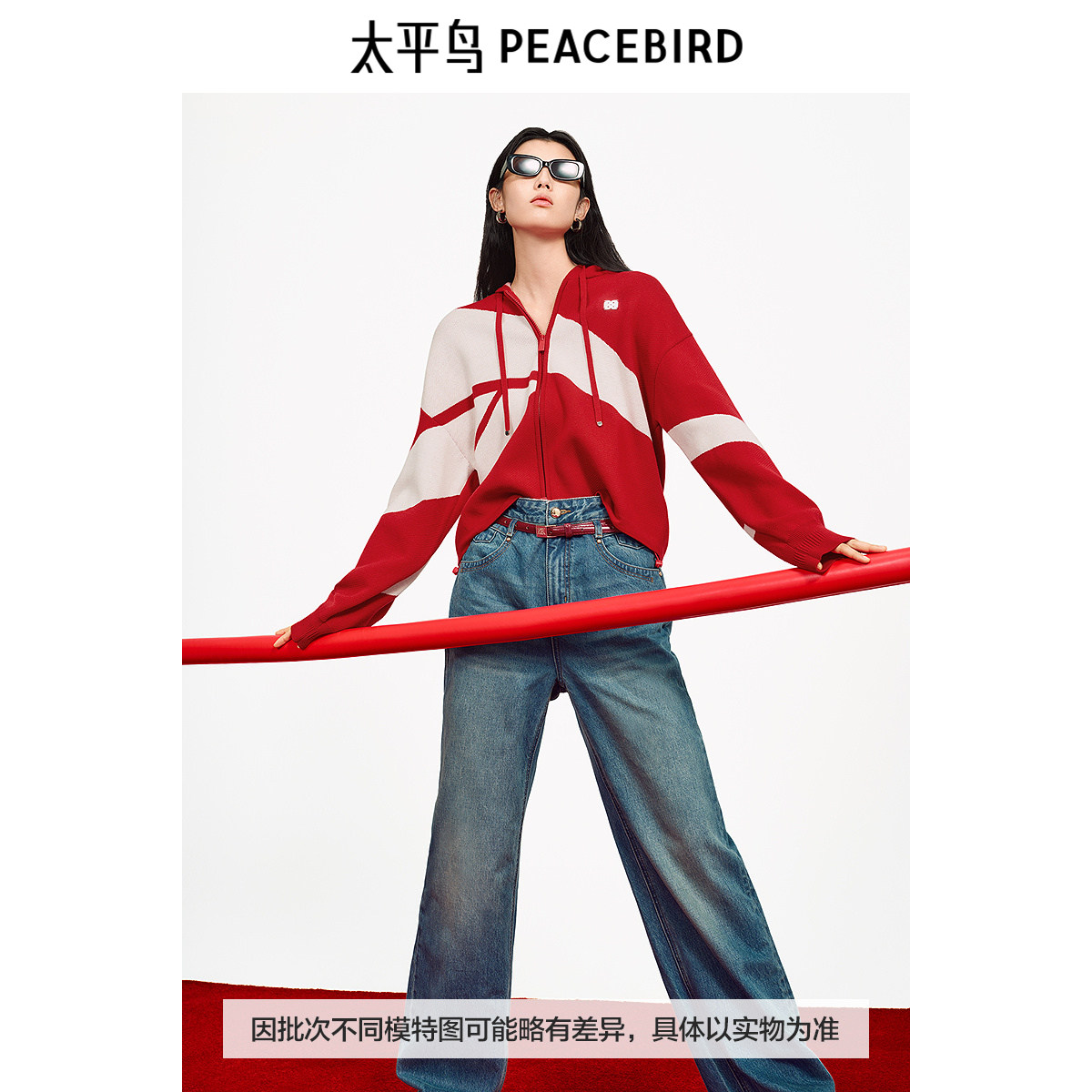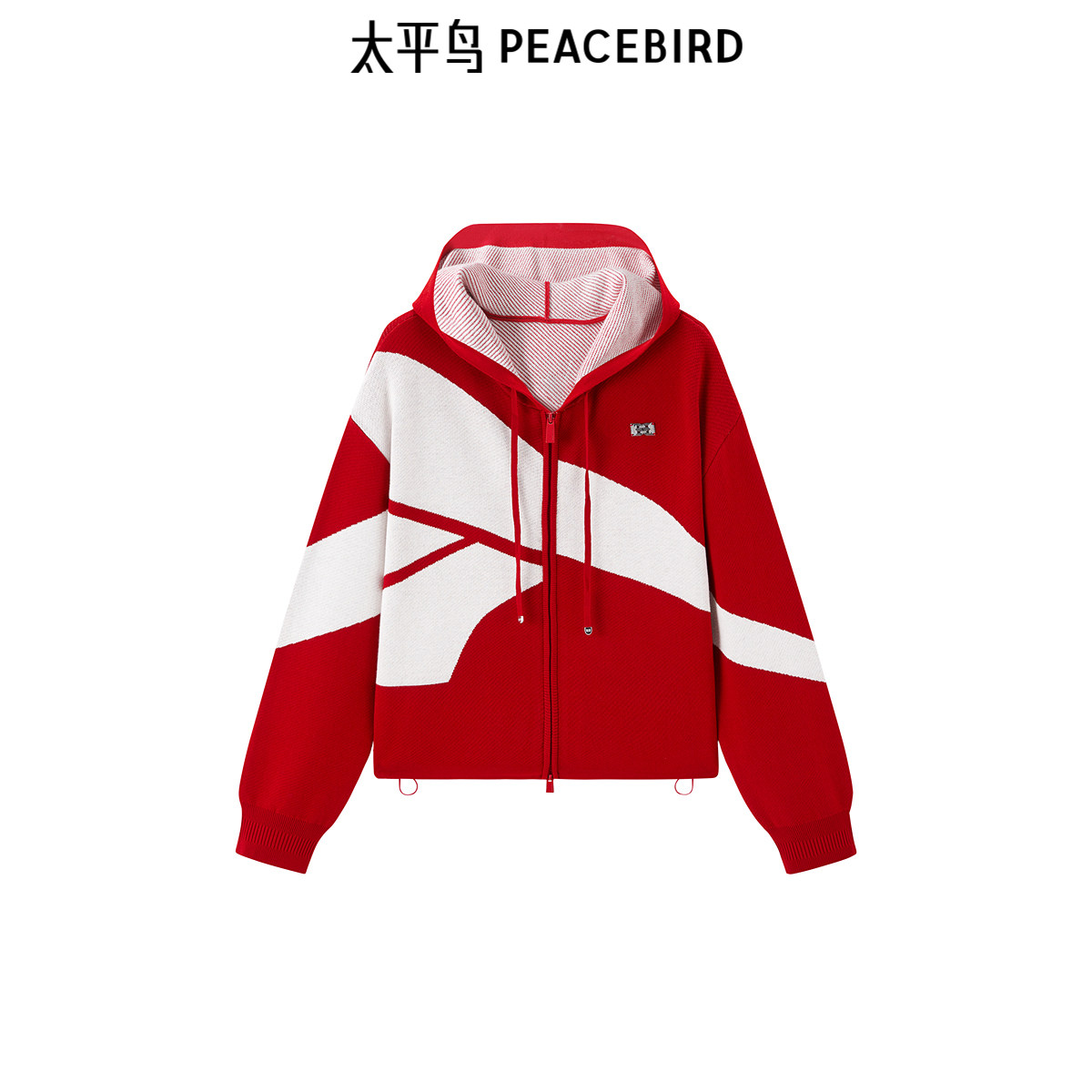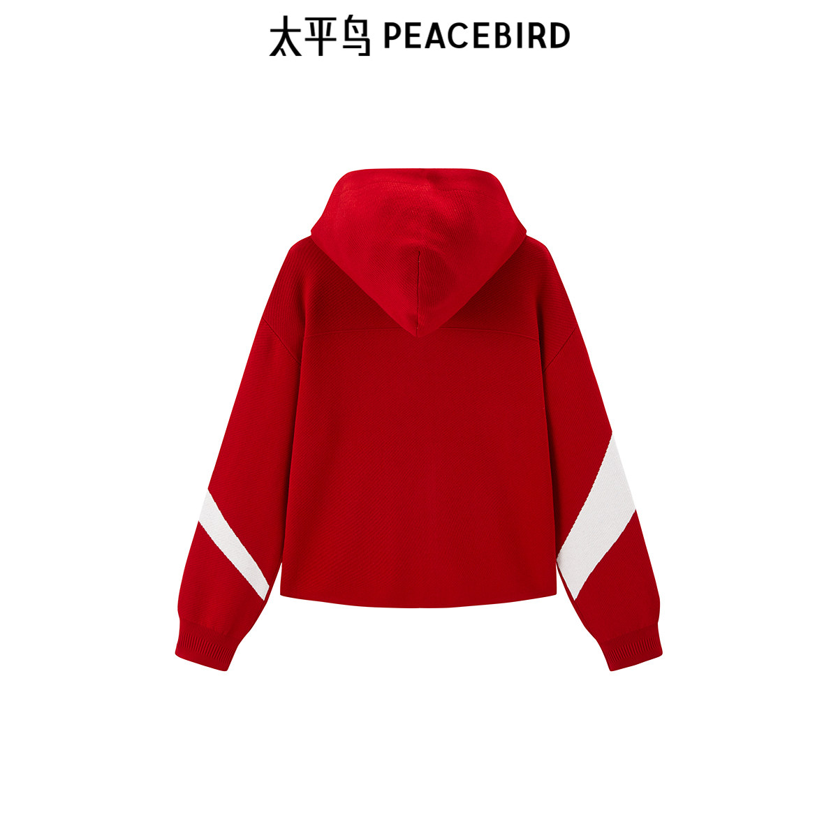 太平鸟2025年新款 外套A3EDF1221 女士Reebok联名高级红色连帽开衫