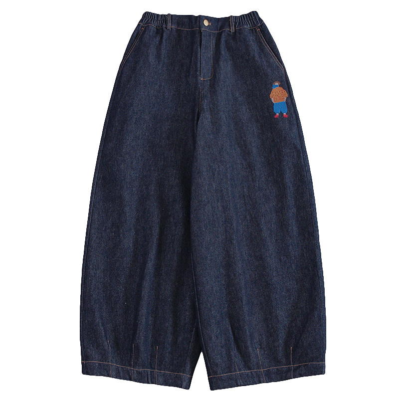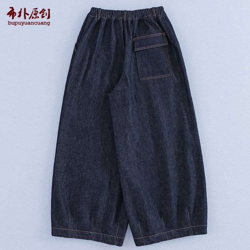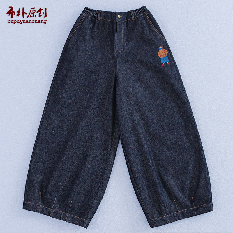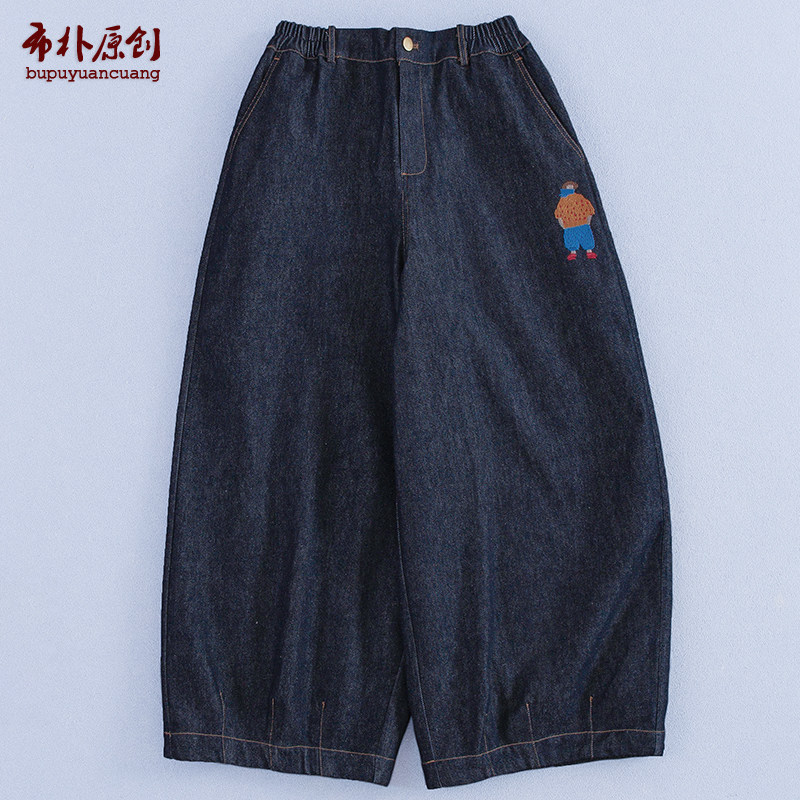 布朴家作2026春季 文艺棉混纺斜纹牛仔布磨毛休闲廓形刺绣女牛仔裤