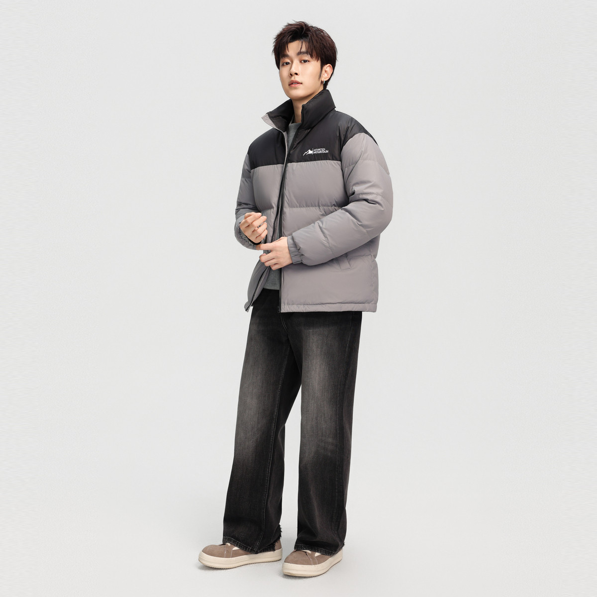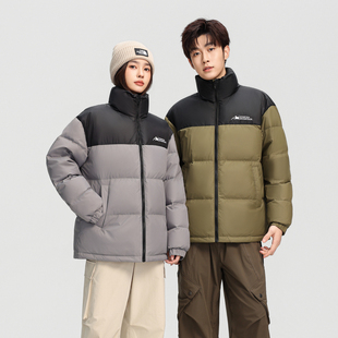 羽绒服立领拼色时尚 男女短款 保暖百搭 情侣款 雪中飞2025冬新款