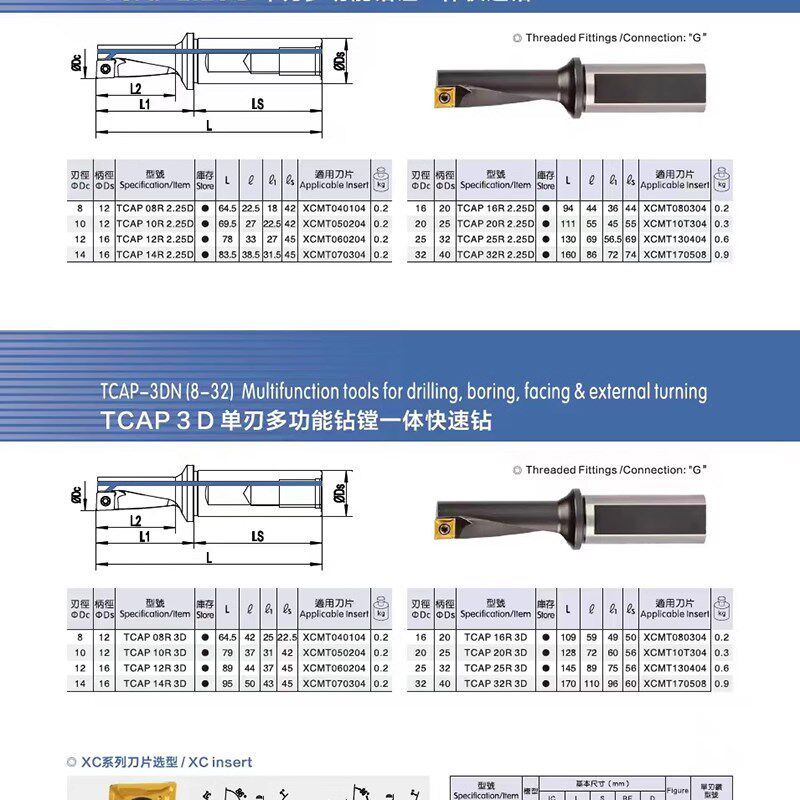 XCMT 高品质单刃多功能钻镗一体快速钻TCAP暴力钻U钻2.25D 3D装