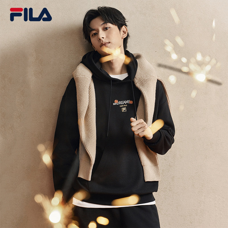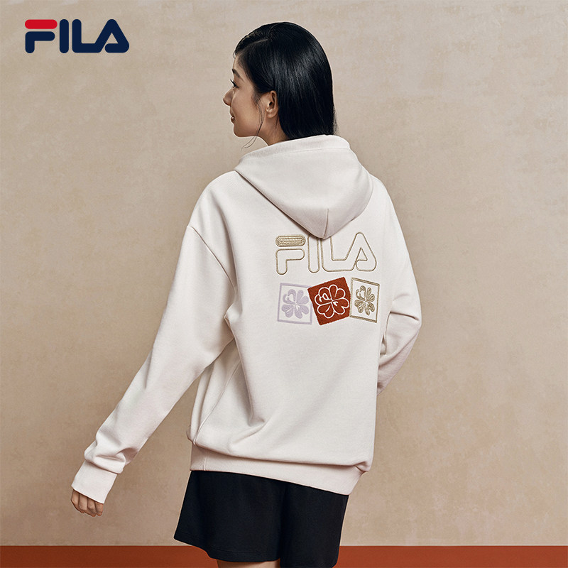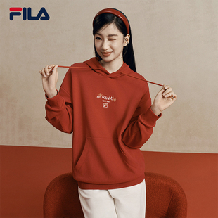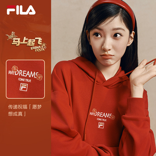 马上起飞FILA斐乐男女连帽卫衣2026春新款 情侣海棠花红色新年上衣