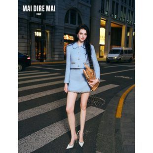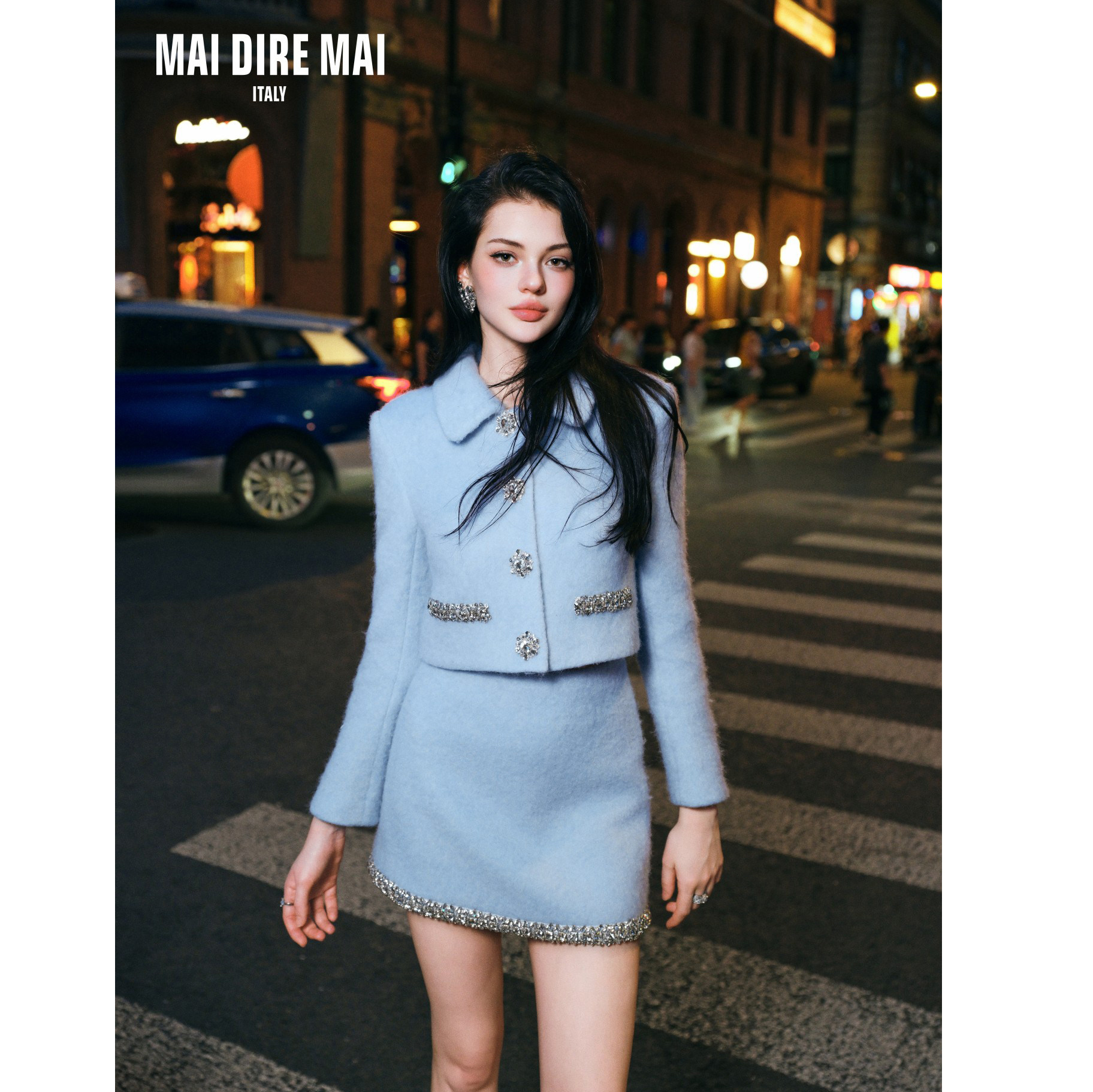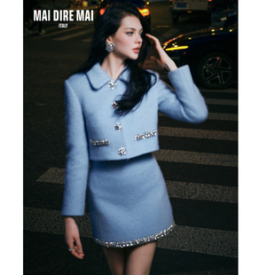 柔雾蓝羊毛钻饰外套半身裙套装 2025AW 轻奢高级感 DIRE MAI