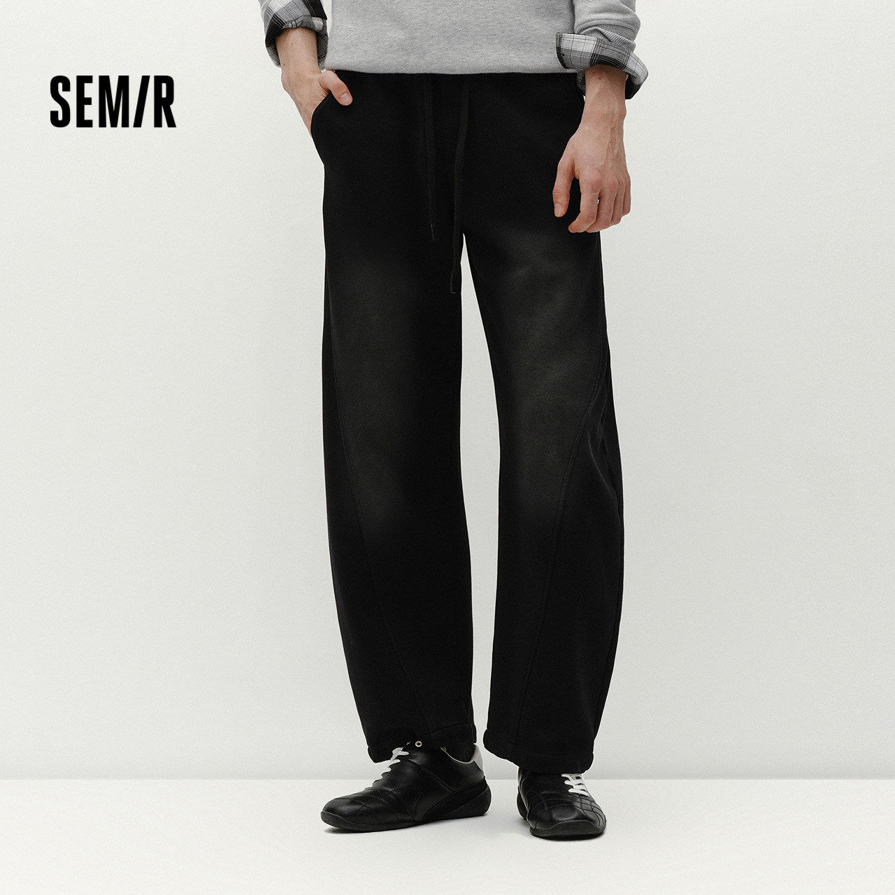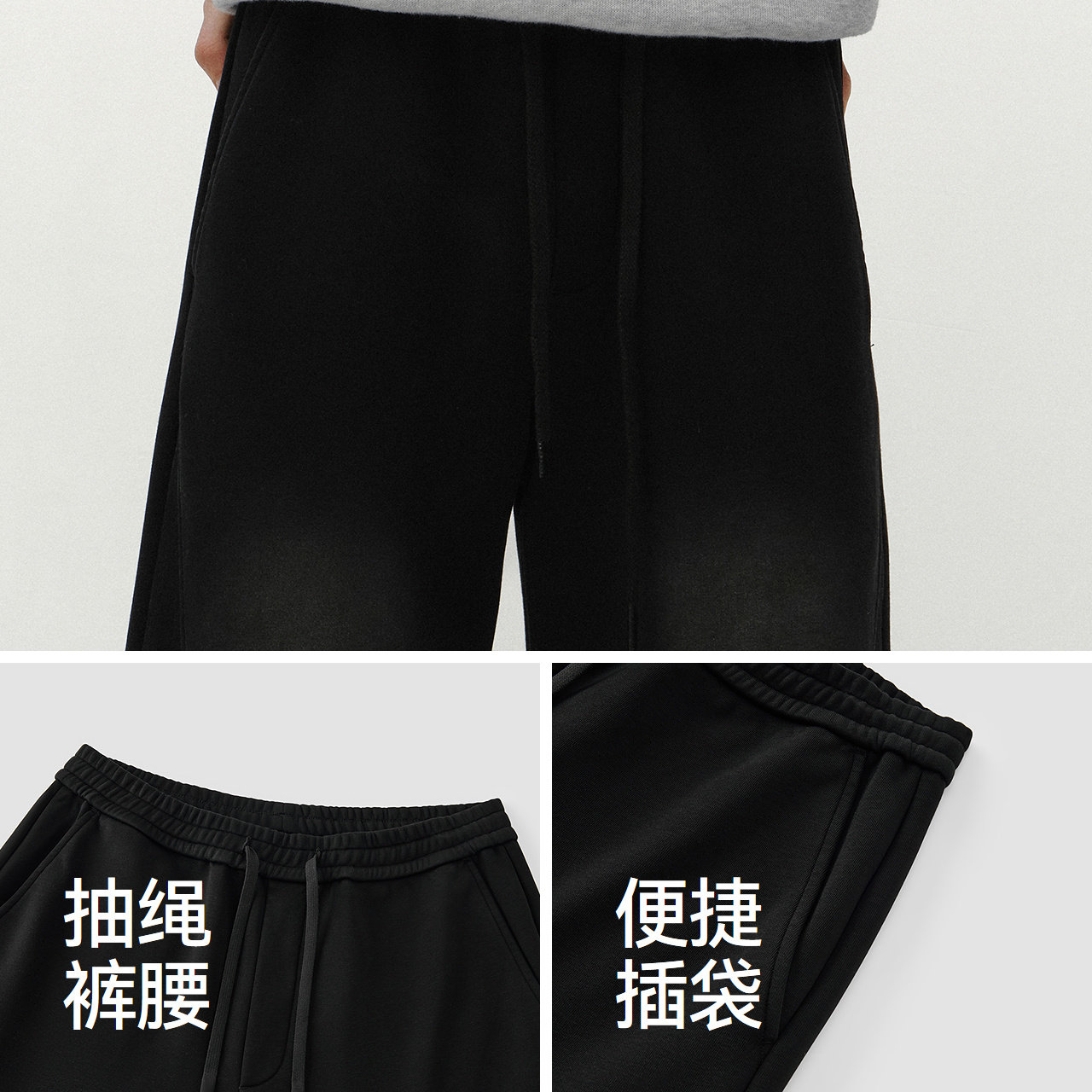 松弛针织裤 商场同款 2025新款 男冬加绒宽松弧形弯刀裤 森马休闲裤