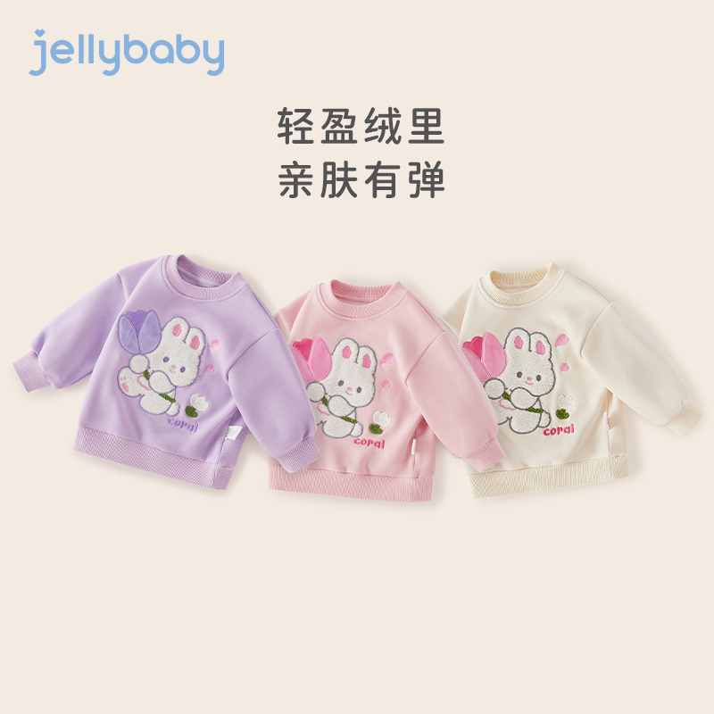 杰里贝比女童卫衣2025宝宝冬季 衣服小童加绒上衣秋冬女孩儿童冬装