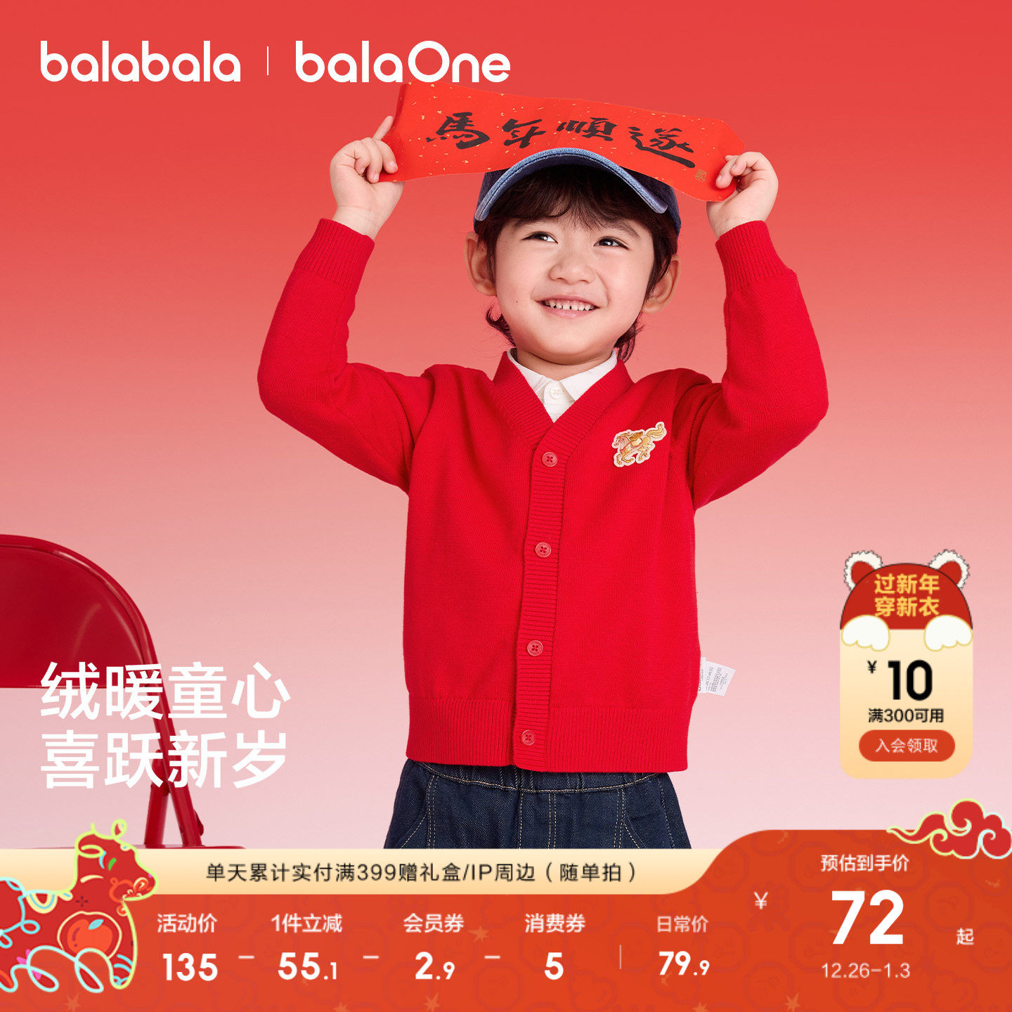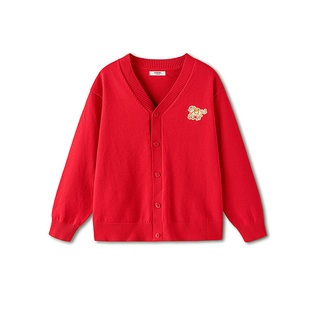 针织开衫 秋冬装 红色拜年服潮 儿童毛衣男女童2025新款 巴拉巴拉童装